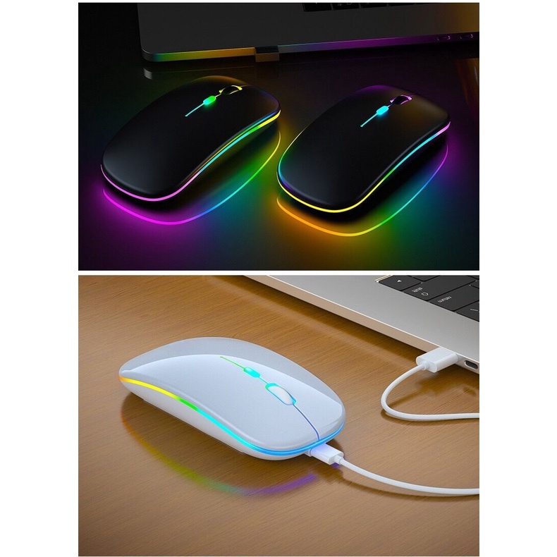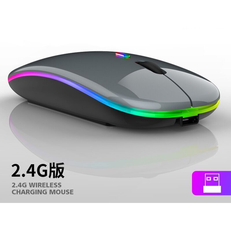 Mouse: Silent Wireless Slim Rechargeable Mouse 2.4 Ghz with LED/ No LED