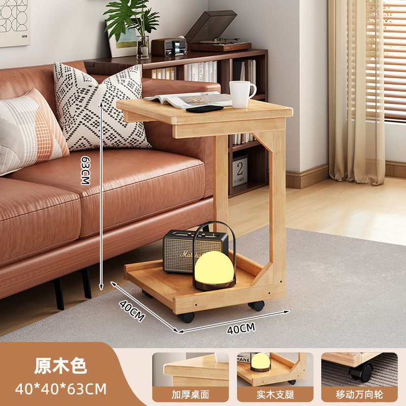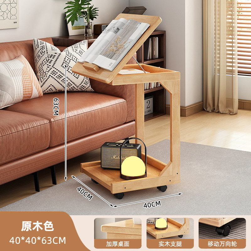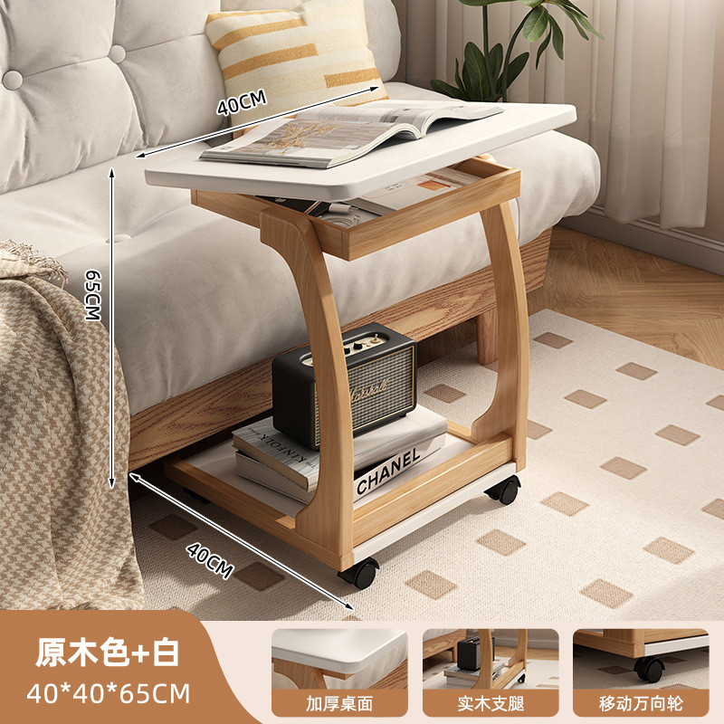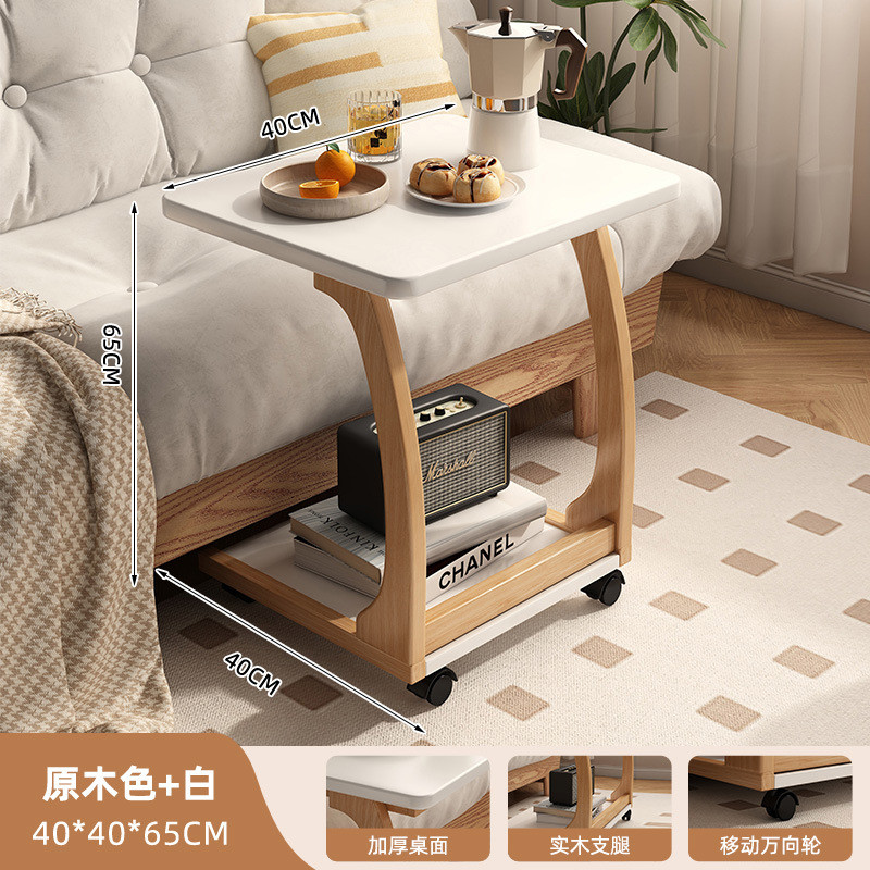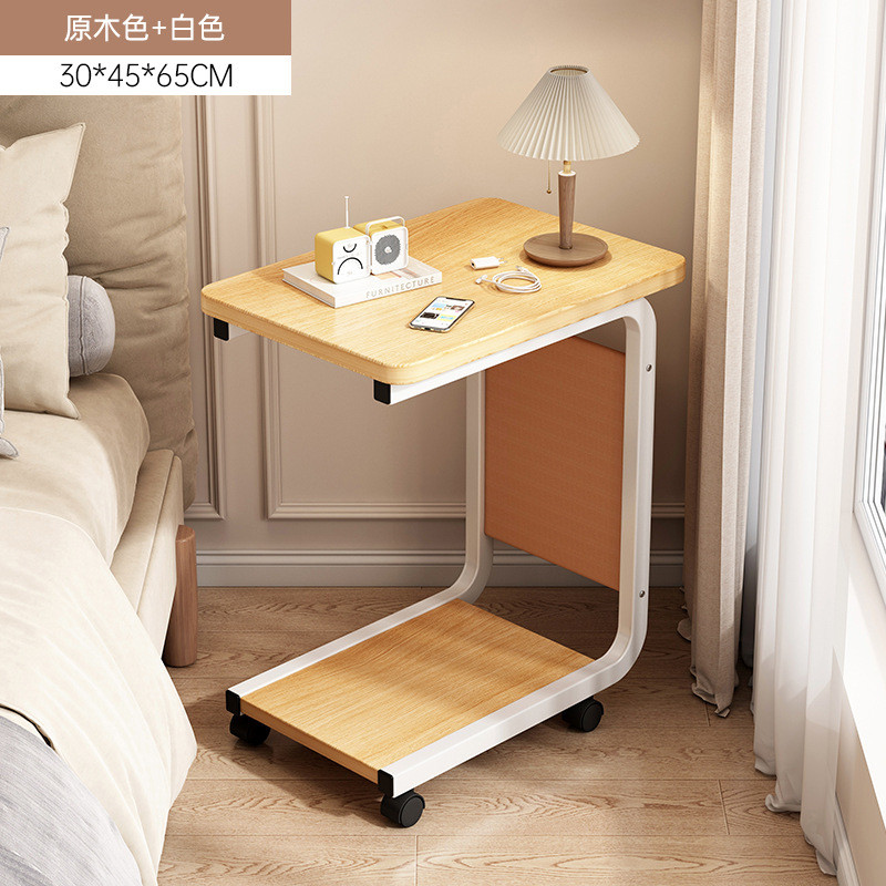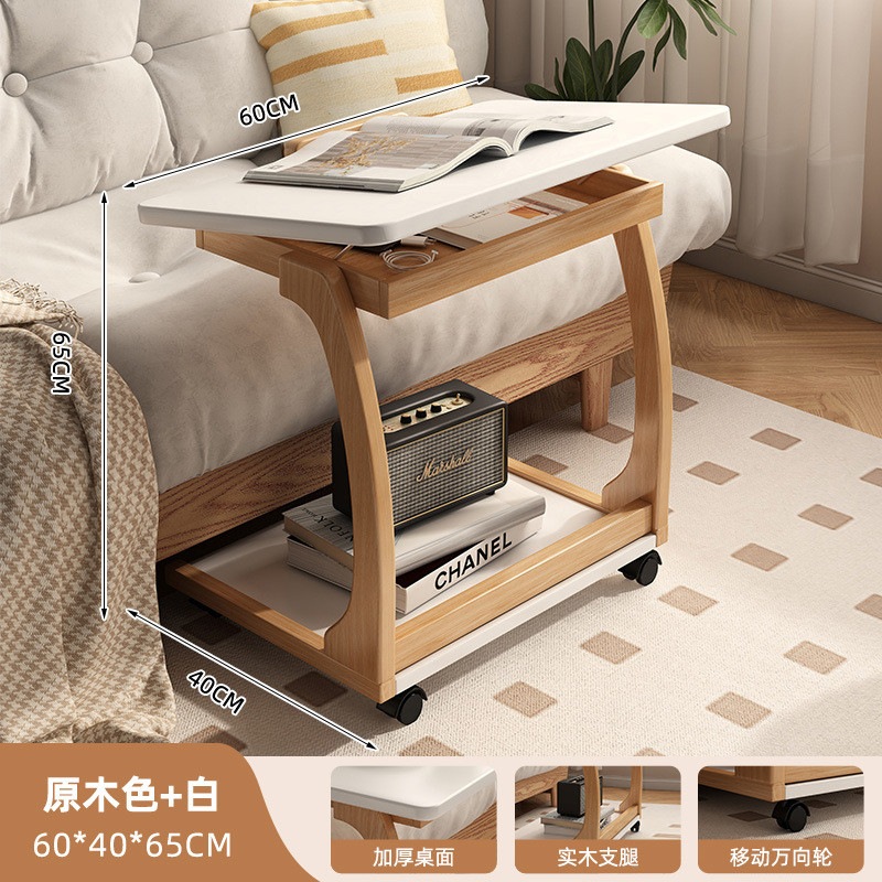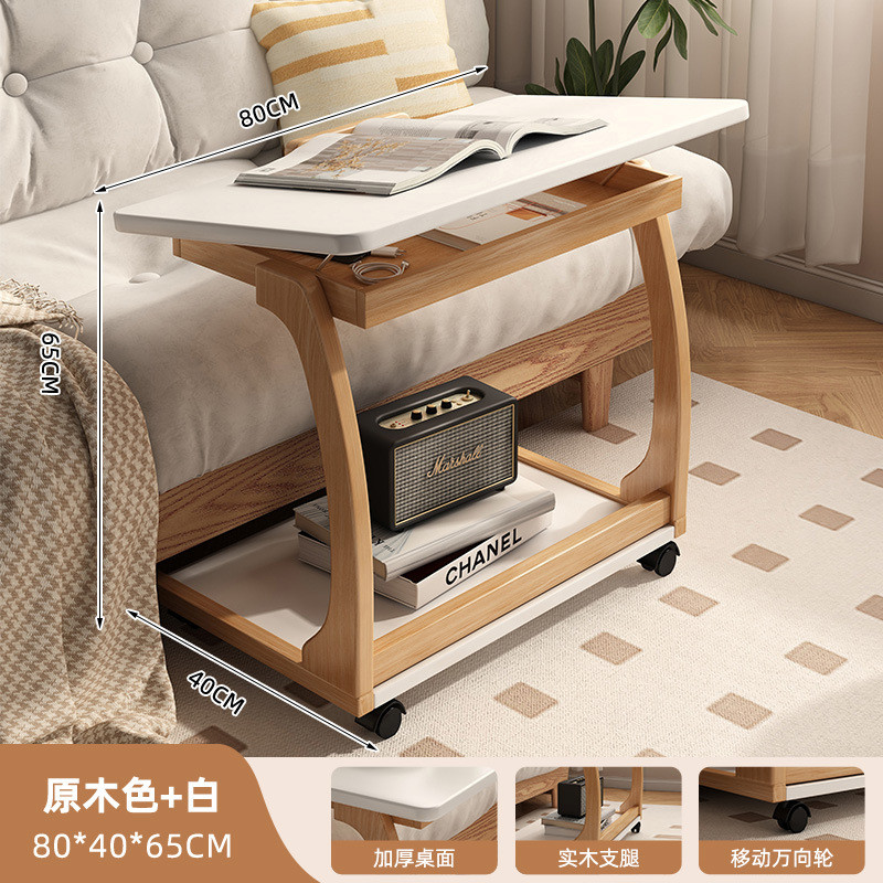 Movable Bedside Table with Solid Wood Legs, Desk for Bedroom, Small Computer Desk for Students, Simple Home Use Small Table, Study Desk