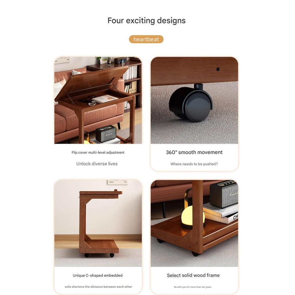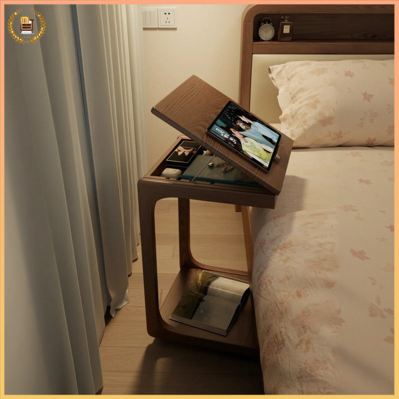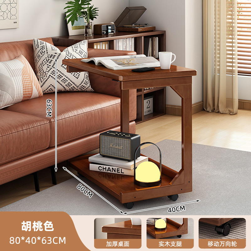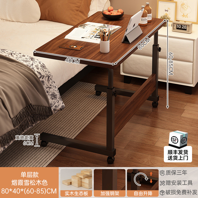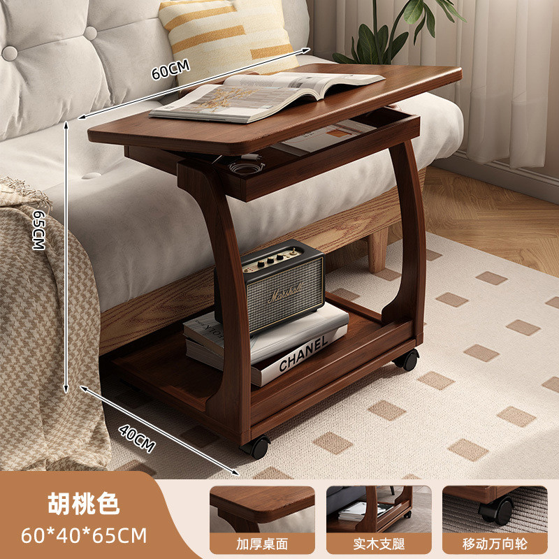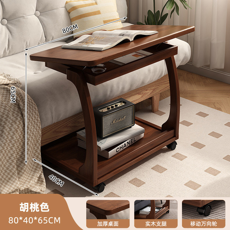 Movable Bedside Table with Solid Wood Legs, Desk for Bedroom, Small Computer Desk for Students, Simple Home Use Small Table, Study Desk