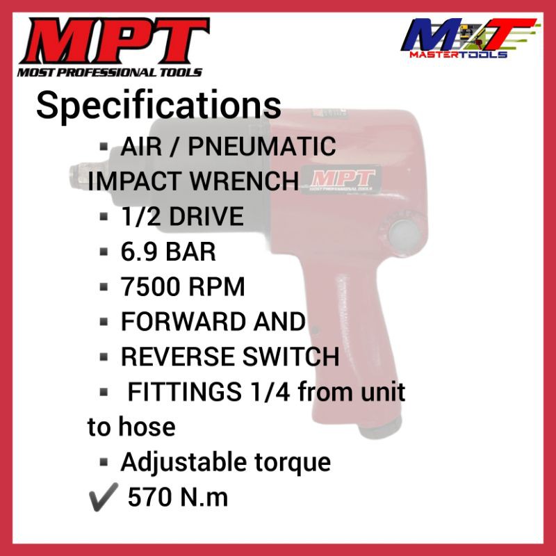 Mpt Air Impact Wrench 1/2 drive