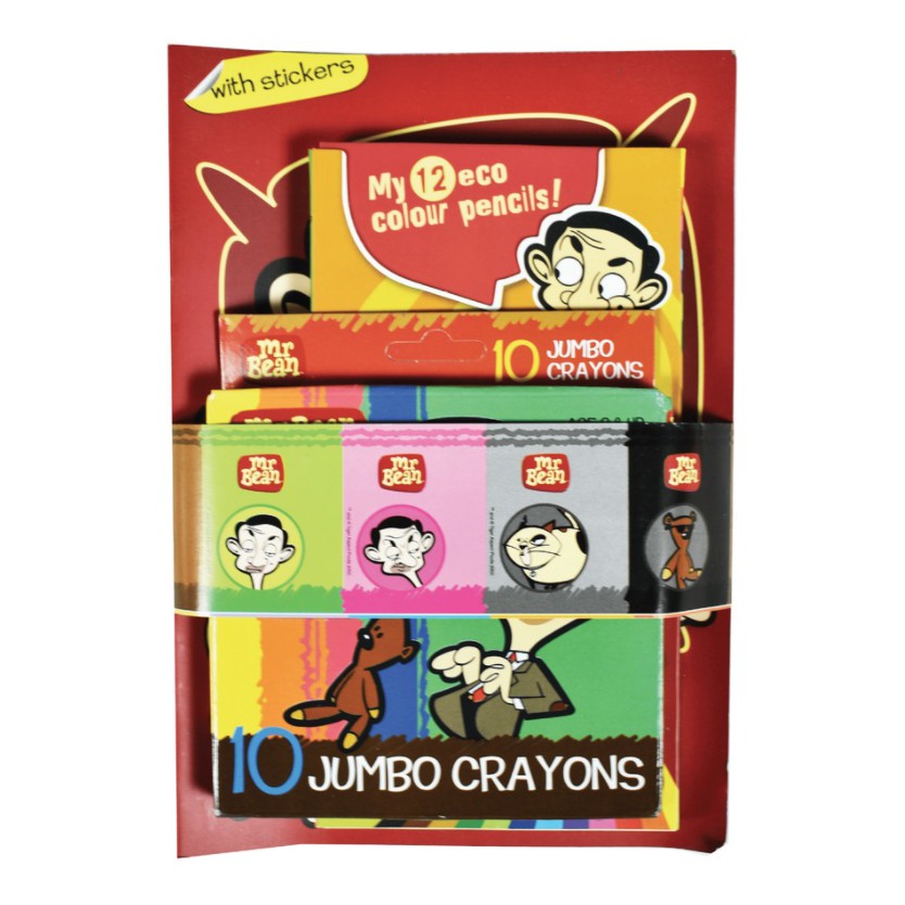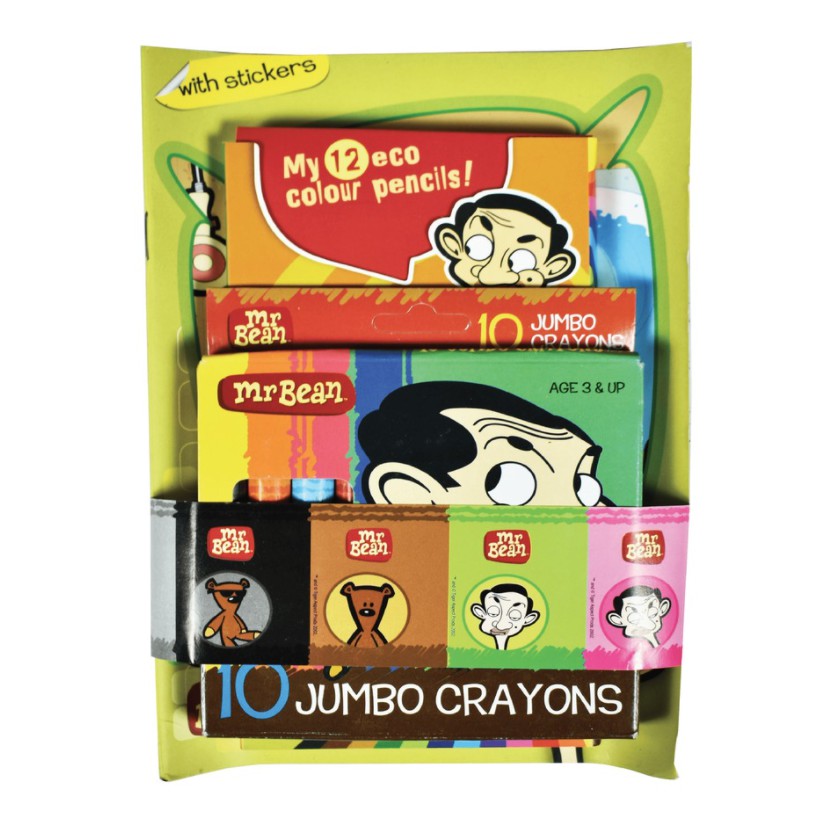 Mr Bean Drawing Set (Colouring Book + Newspaper Colour Pencils + Crayons)