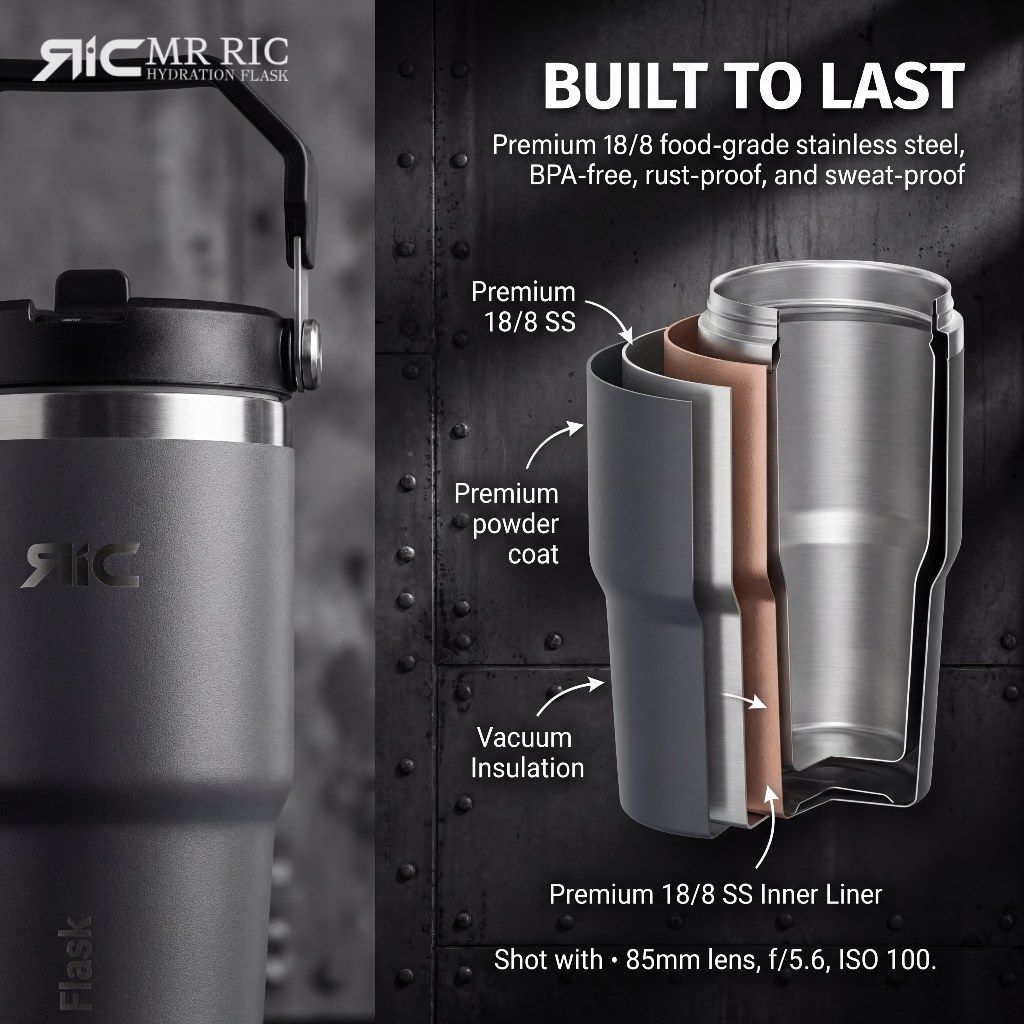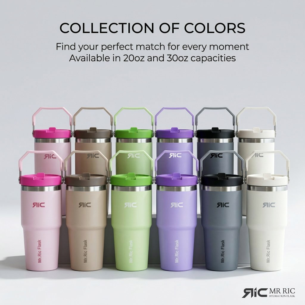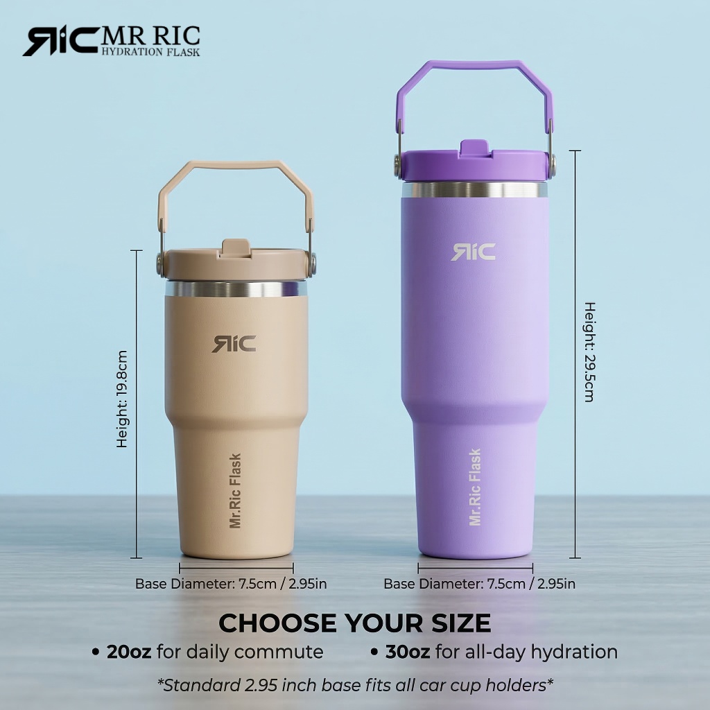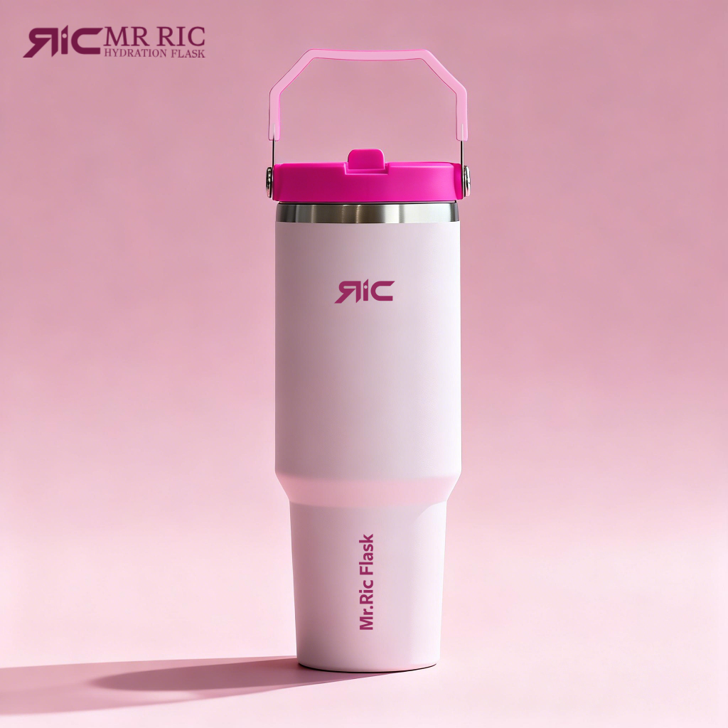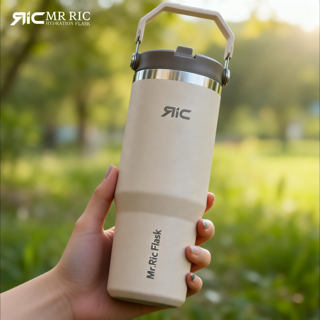 Mr. Ric 30oz Stainless Insulated Tumbler w/ Handle Lid Flip Straw Leak Proof Double Wall Vacuum Cup