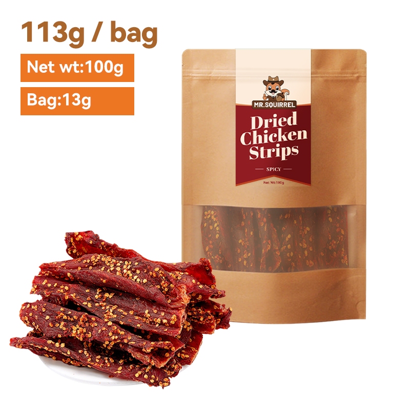 Mr.Squirrel Low Calorie Keto snacks High Protein Dried chicken Strips Halal food Spicy dried chicken