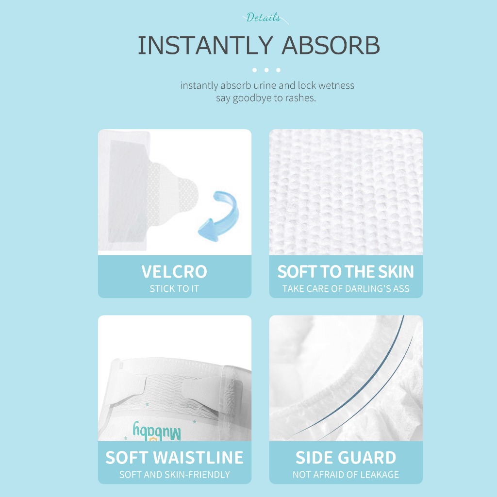 Mubaby Baby Diaper 50PCS 100% Cotton NB,S,M,L,XL,XXL,XXXL All Size Disposable Diaper
