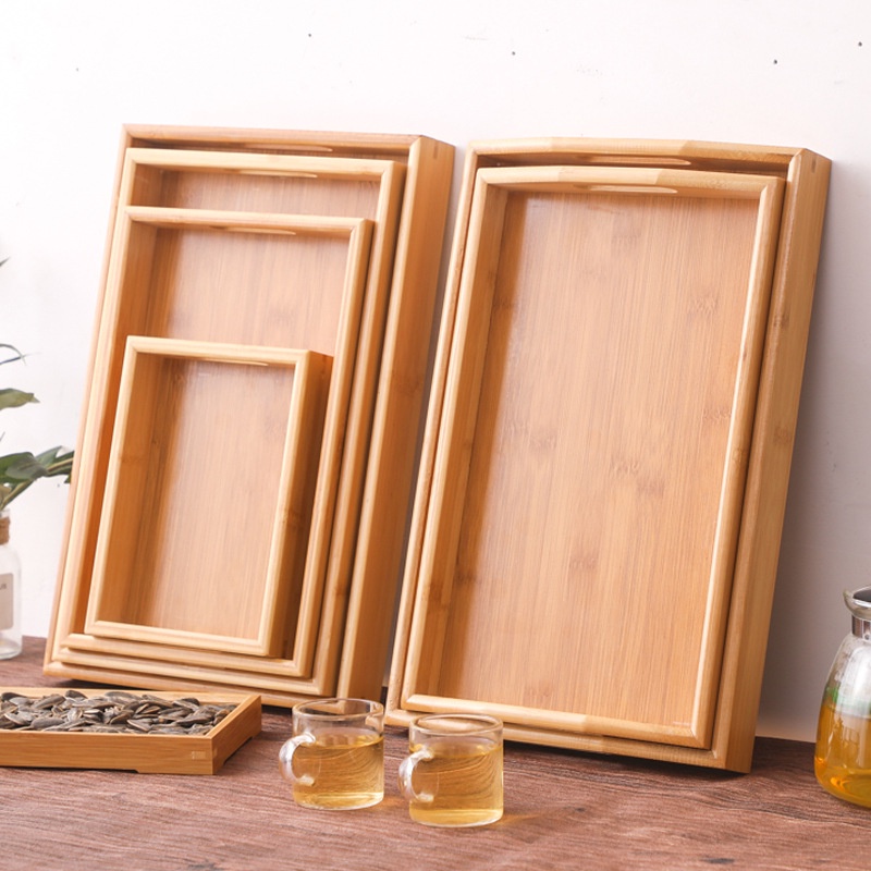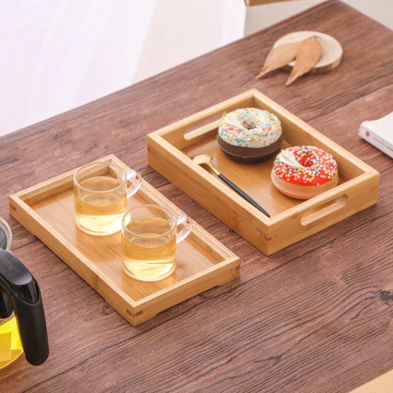 Mulit-purpose Bamboo Tea Tray Japanese Style with handle Wood Serving Tray Storage Tray