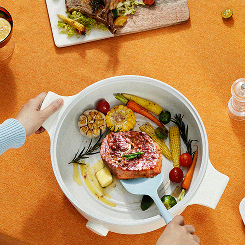 ✅ Multi Electric Cooker Function Hot Pot Non-stick Portable Round Skillet All In One 【Free Gift】
