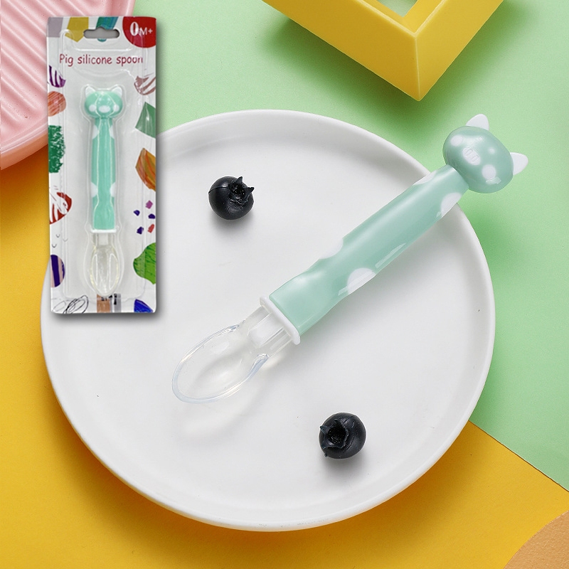 Multi-Color Cartoon Designed Baby Spoon Soft Silicone Utensils No BPA