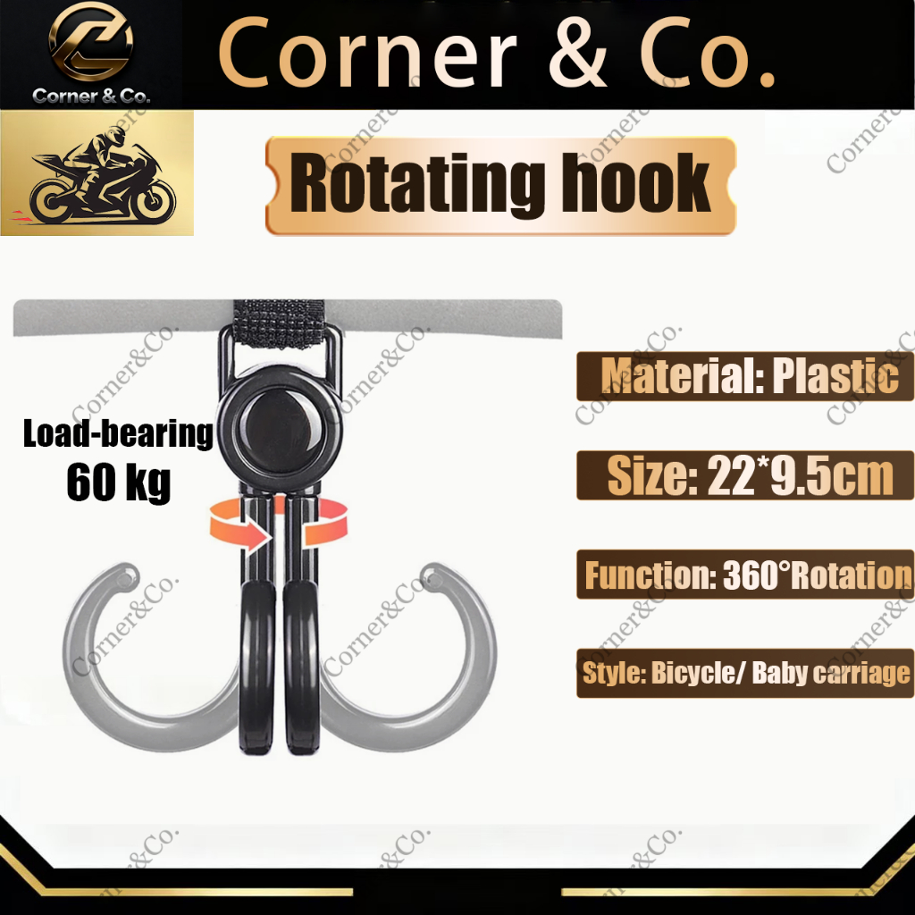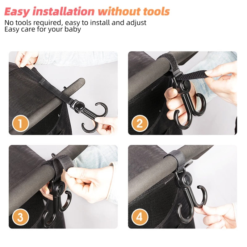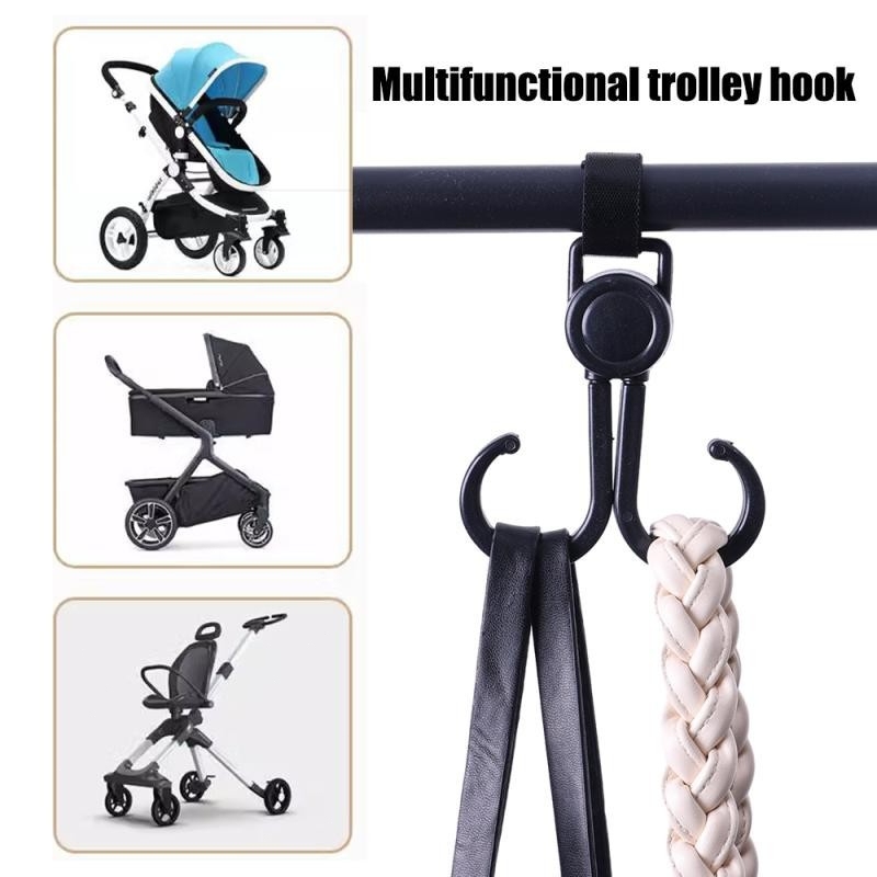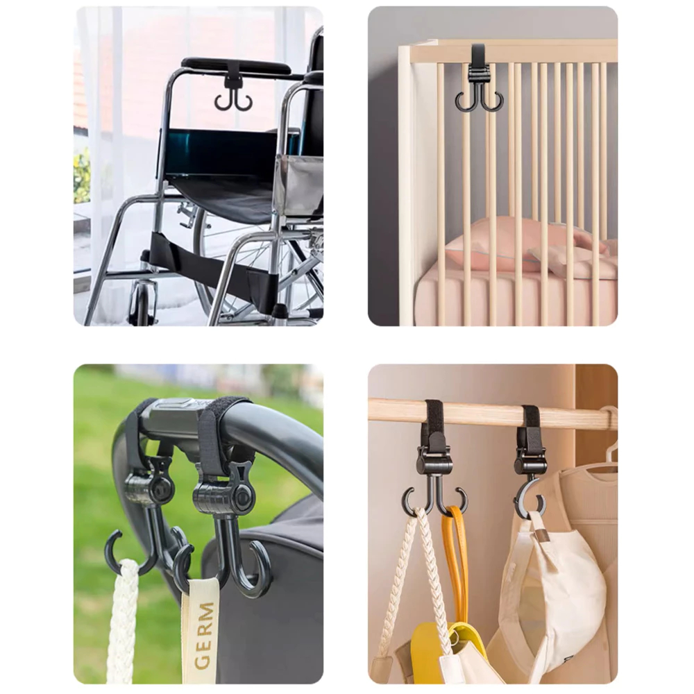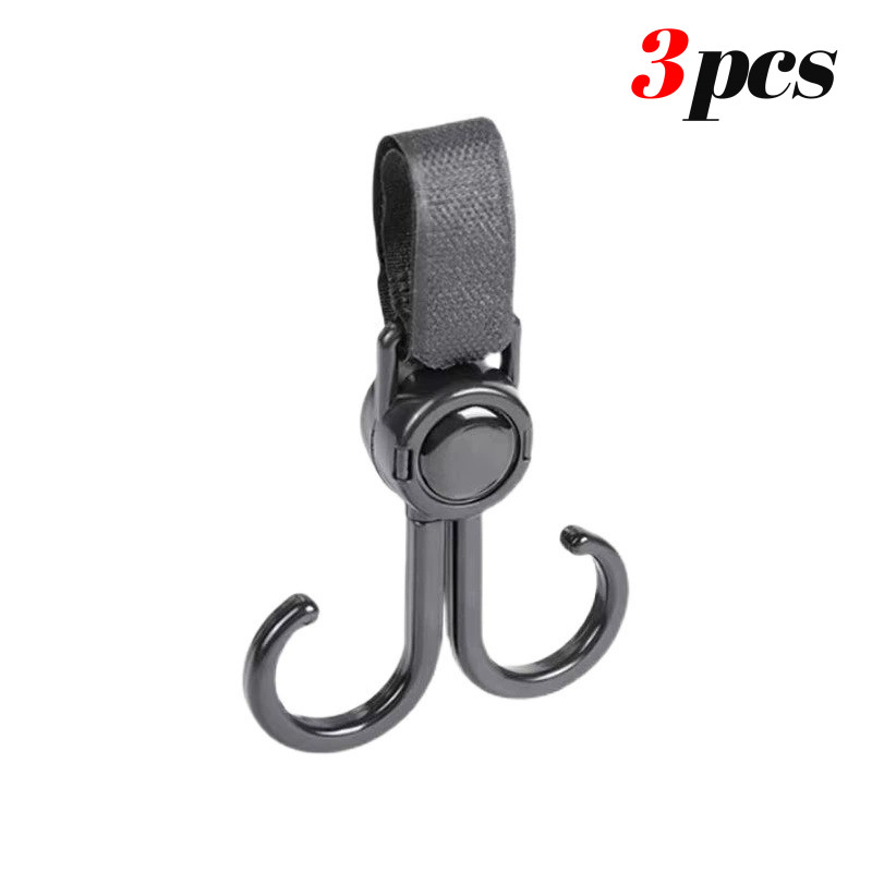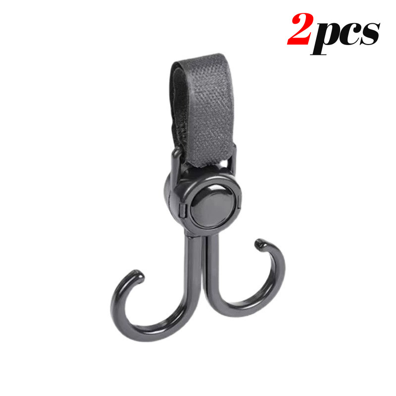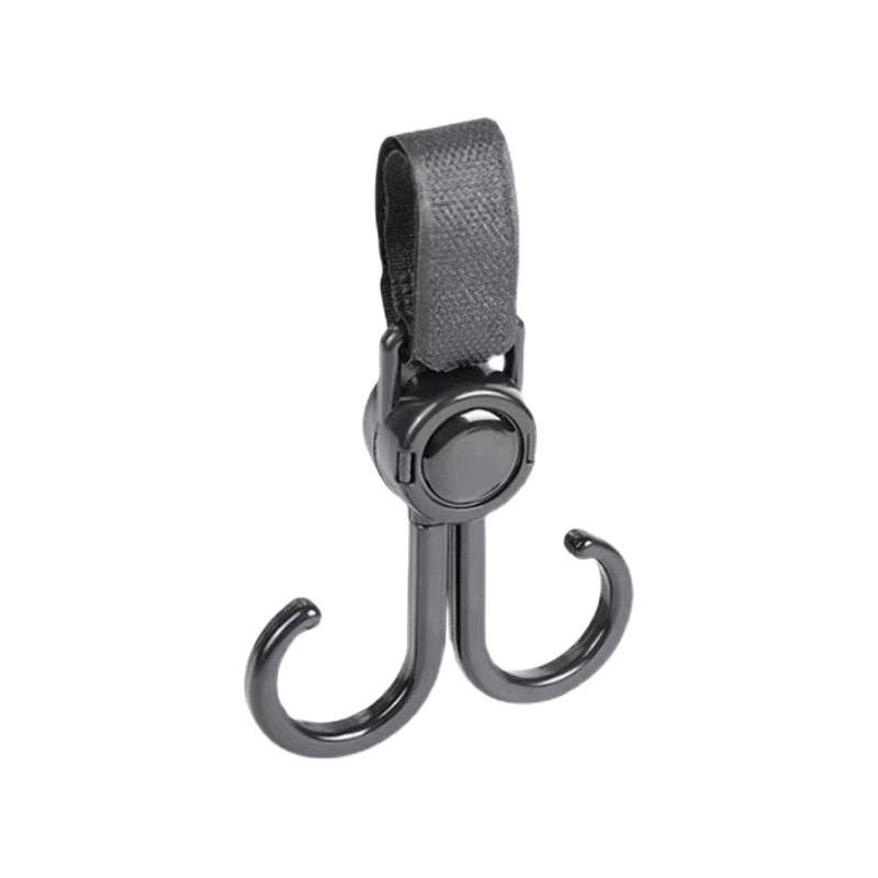 360 Degree Rotatable Double Hook Stroller Hanger with Adjustable Strap for Strollers Bike Handlebars