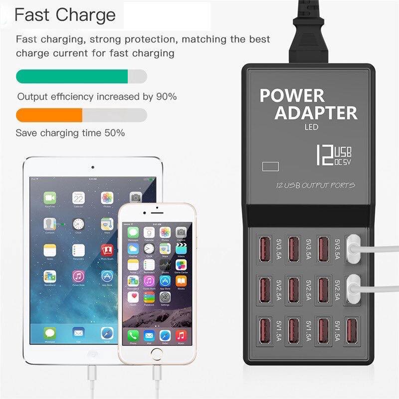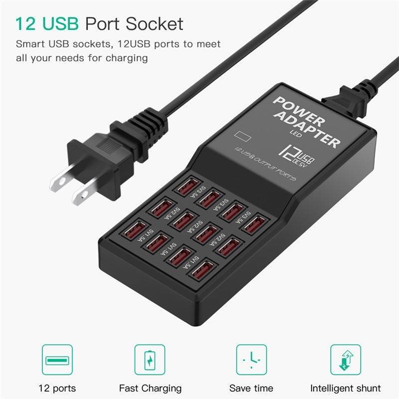 Multi Port Wall Charger Powed Adapter 60W 10 12-Port USB Fast Charging USB HUB Desktop Station