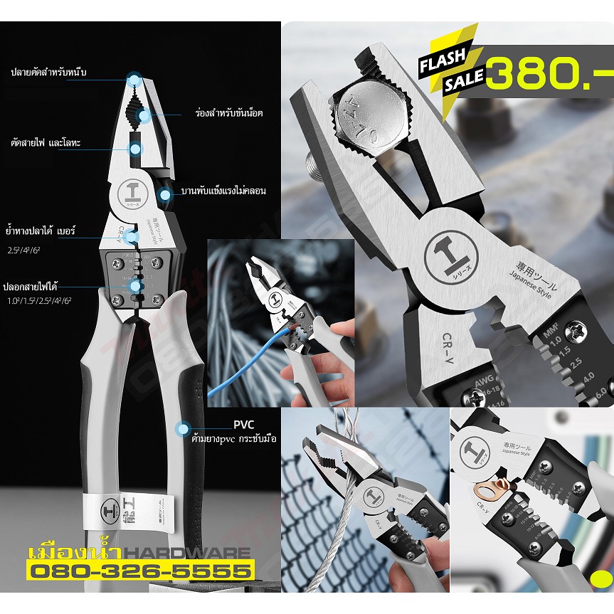 Multi-Purpose Pliers 9 "/ 7" Japanese Style Made Of Cr-V Steel Twisted Wire Cutters Crimping Cutting Tightening A Single Wrench Complete