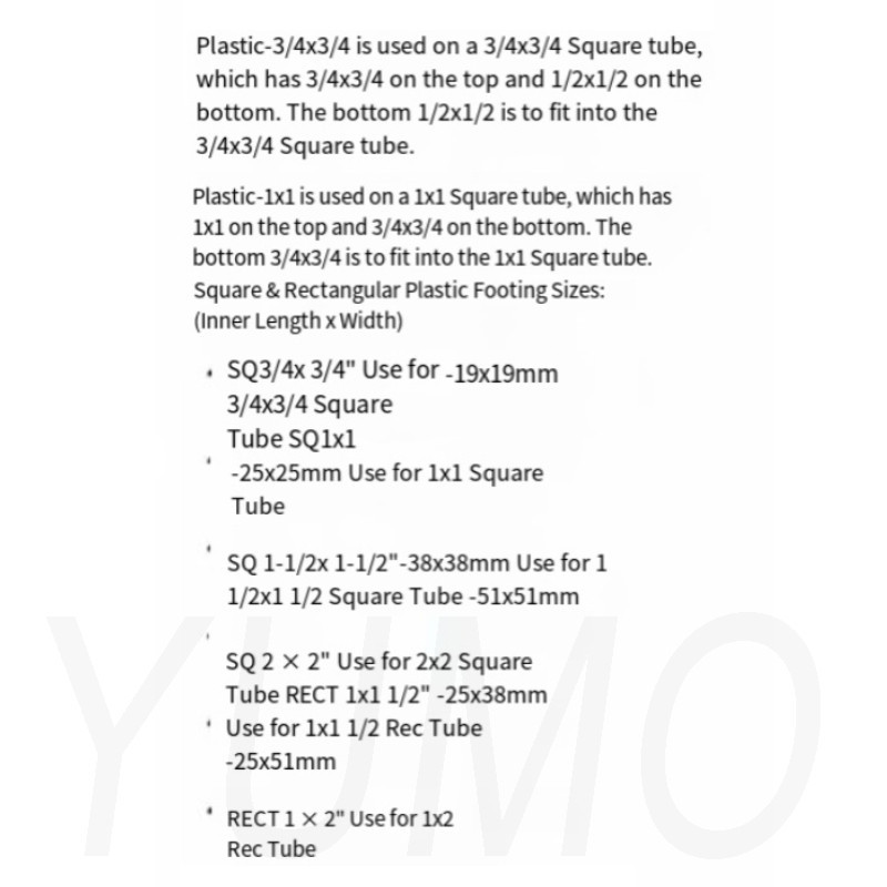 Multi Size Plastic Footing Square Rectangular Tube Plastic Footing(Suitable for stainless steel)