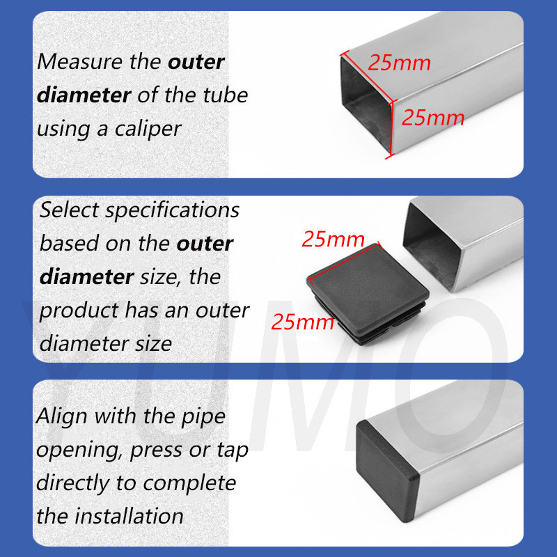 Multi Size Rubber Footing Round Tubular Plastic Plug Square Furniture Table Feet Tubular Chair