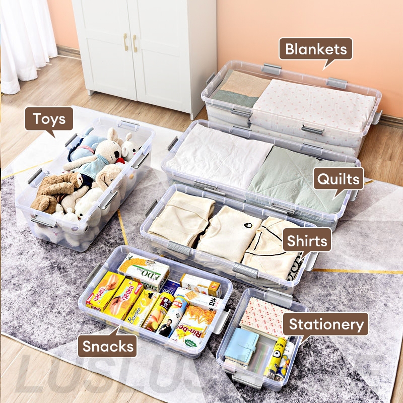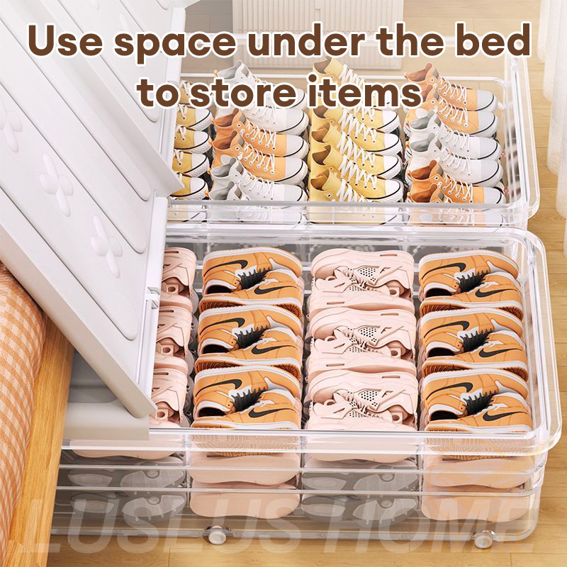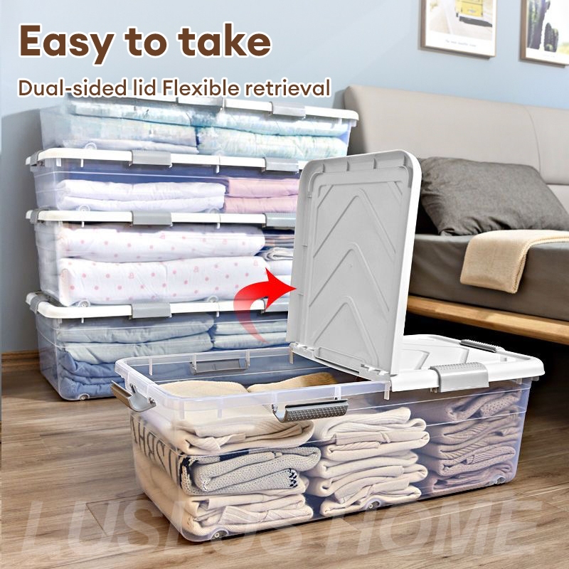 LUS Under Bed Storage Box With Wheels Oversize Clothing Organizer Plastic Flat Clothes Organizer