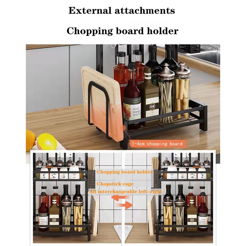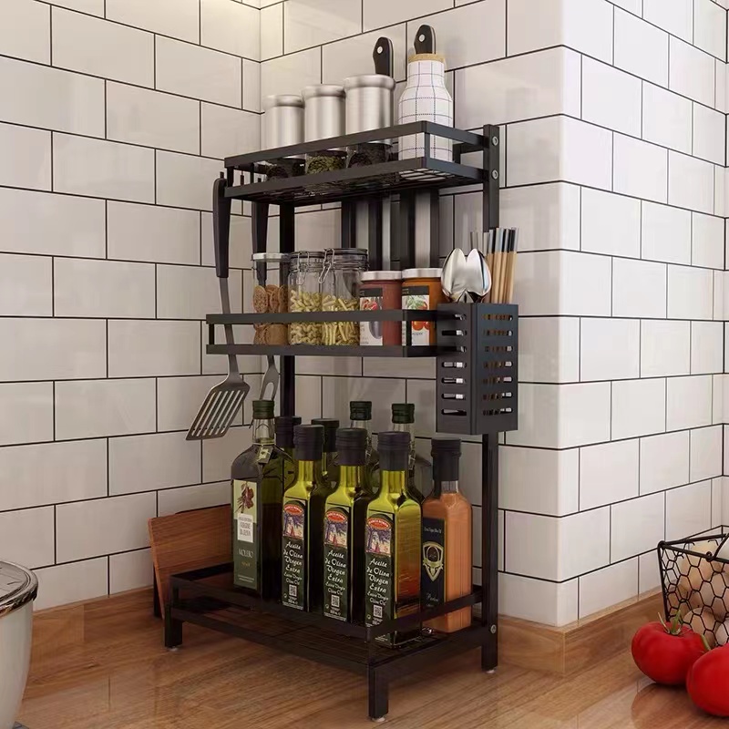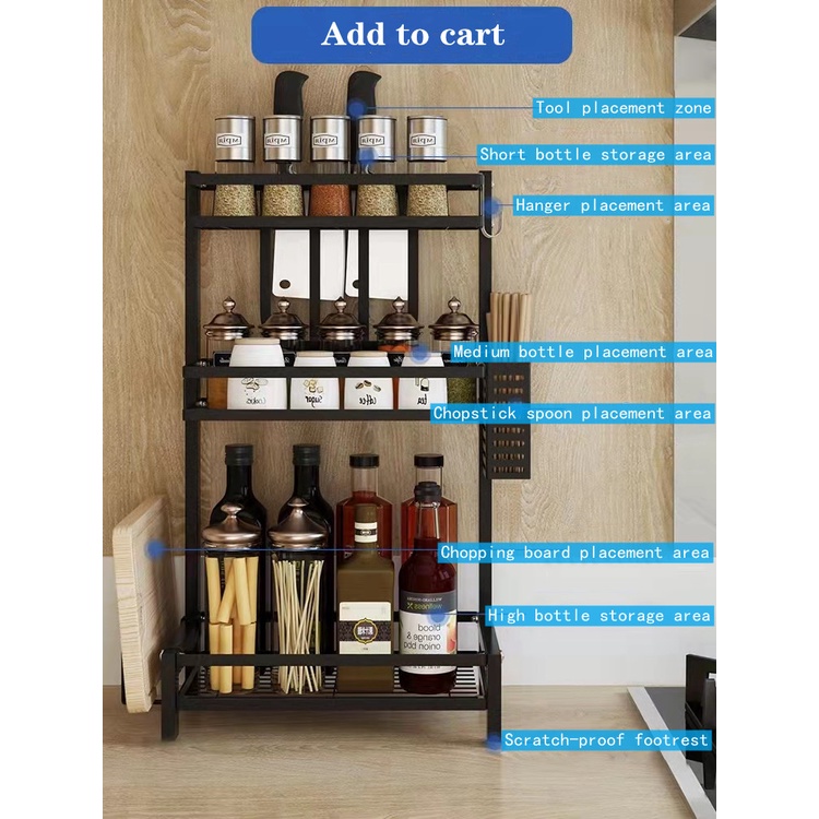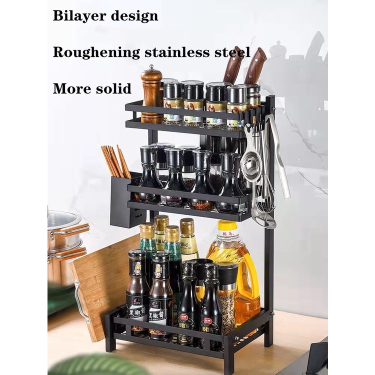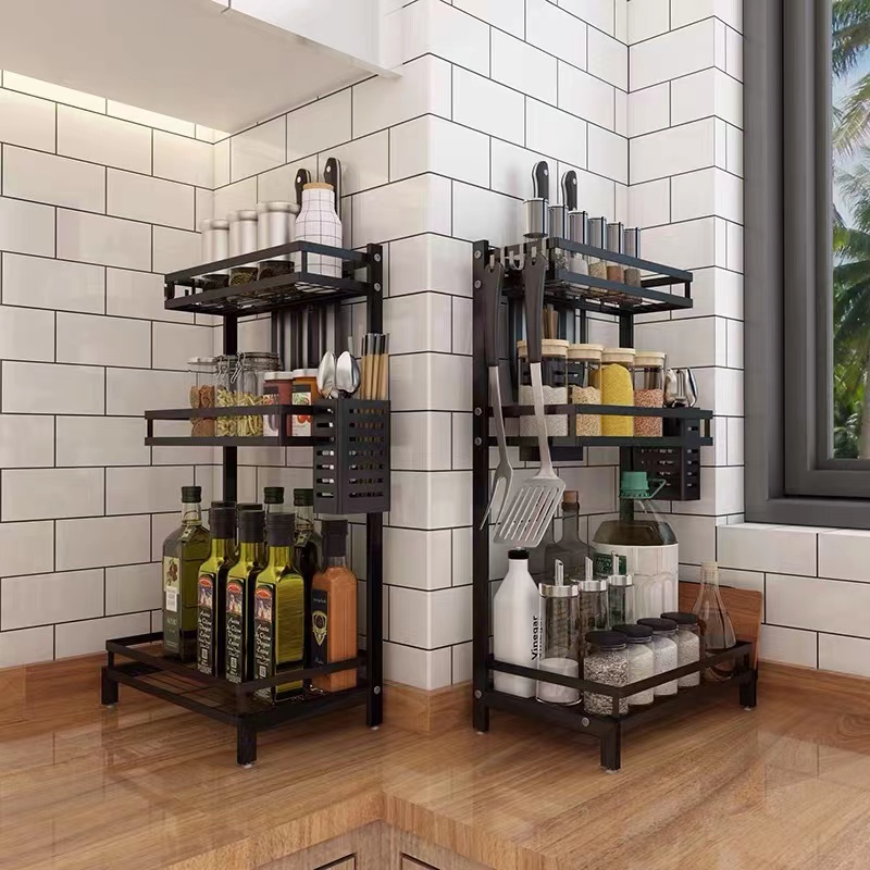 Multi Storey Kitchen Shelf Condiment Rack Stainless Steel Floor Wall Mounted Seasoning Shelf