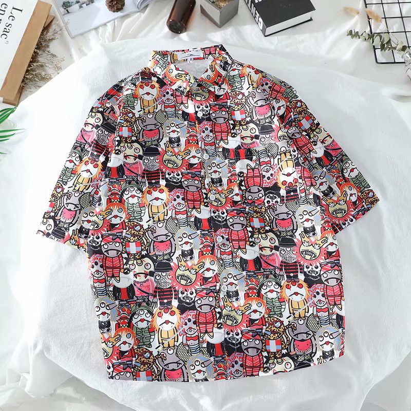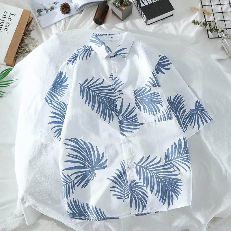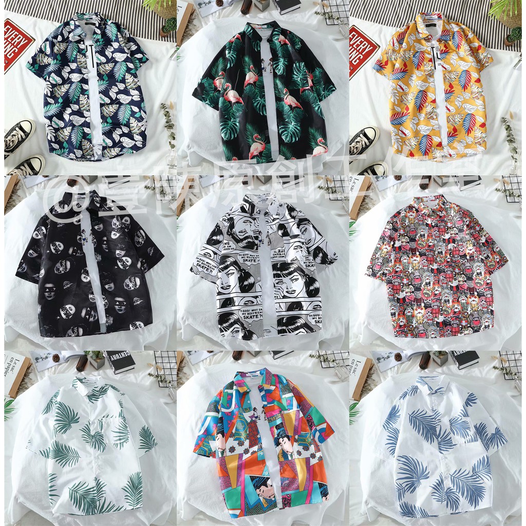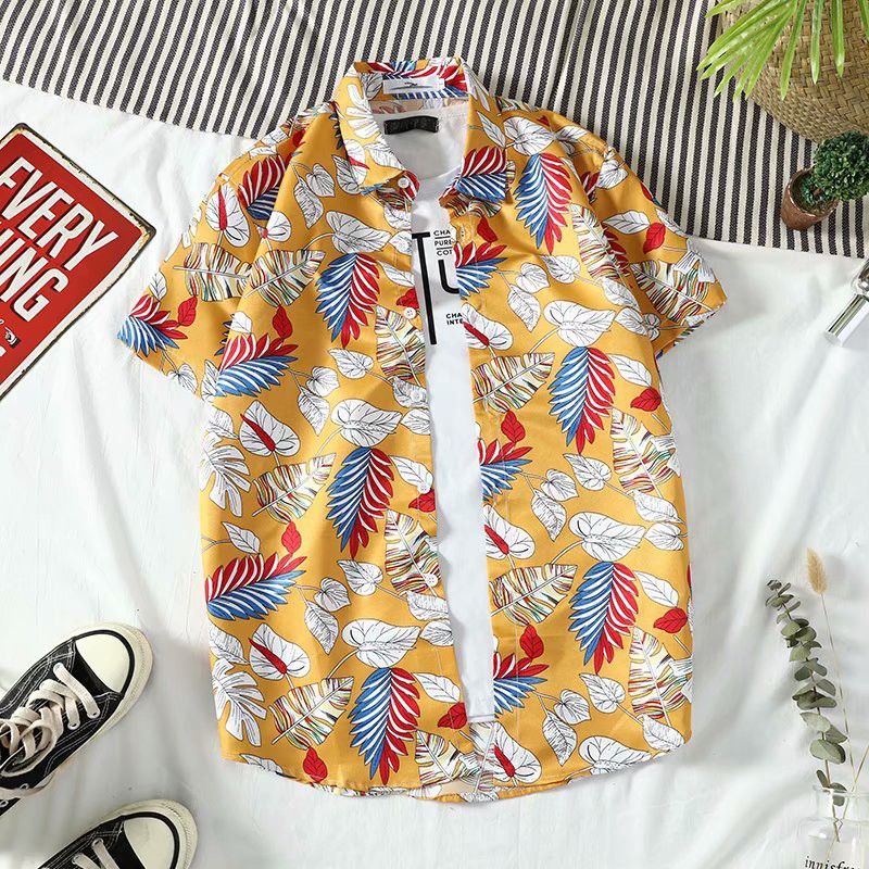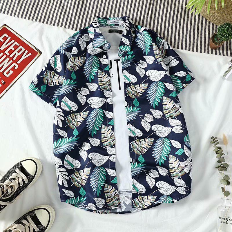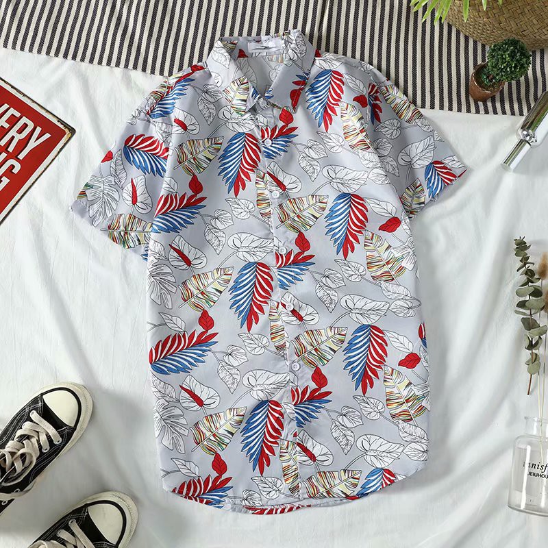 Multi--Tik Tok Super Popular Hawaii Beach Shirt Holiday Style Travel Short-Sleeved Shirt Thin Shirt Coat Couple's Shirt Fashion Shirt Loose All-match Ins Hot Flower Shirt Spot