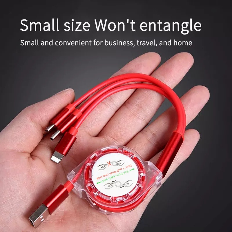 Multi USB Charger Cable Retractable 3 in 1 Multiple Charging Cord 3 in 1 Charger Cable