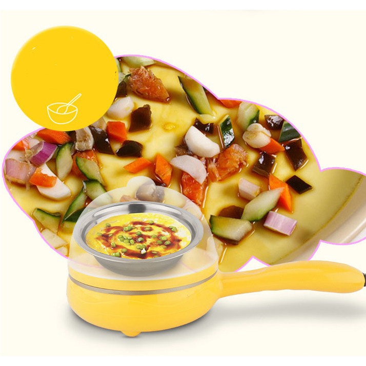 Multi-function 2 in 1 Mini Electric Frying Pan 4Pcs Cooking Kitchen Non-Stick Pans and Egg Cooker