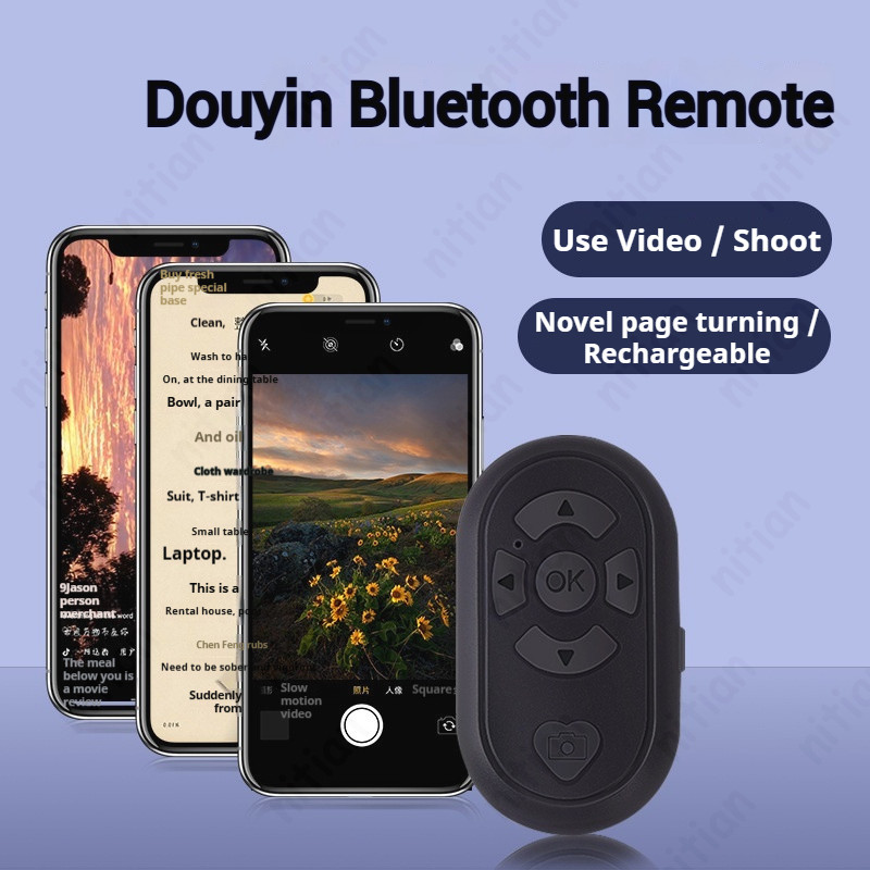 Multi-function Bluetooth Remote Control 6-Button Phone Selfie Video Wireless Remote Controller Rechargeable Self-timer Stick Shutter Button Bluetooth Camera Controller Page Turner
