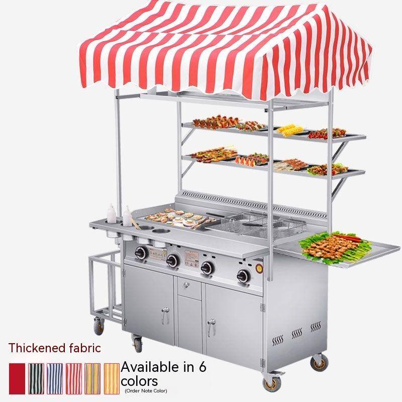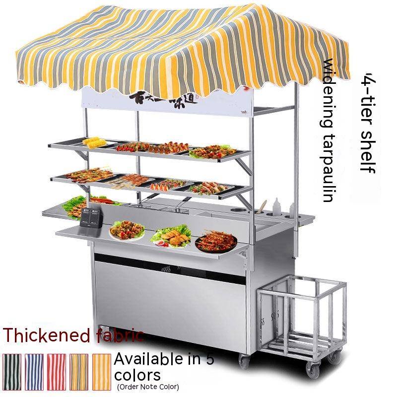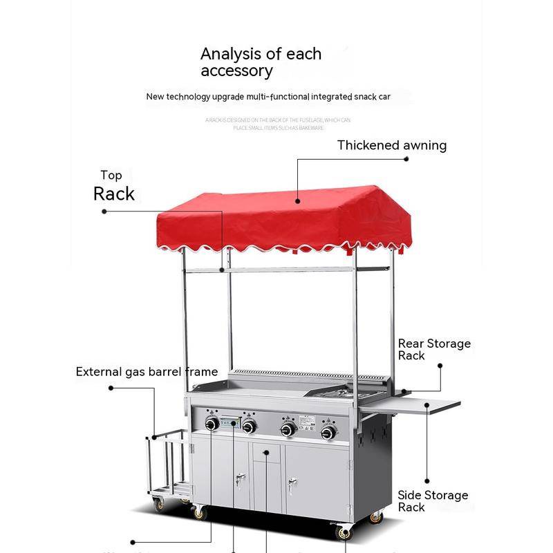 Multi functional snack stall cart, commercial iron plate squid cart, night market mobile cart