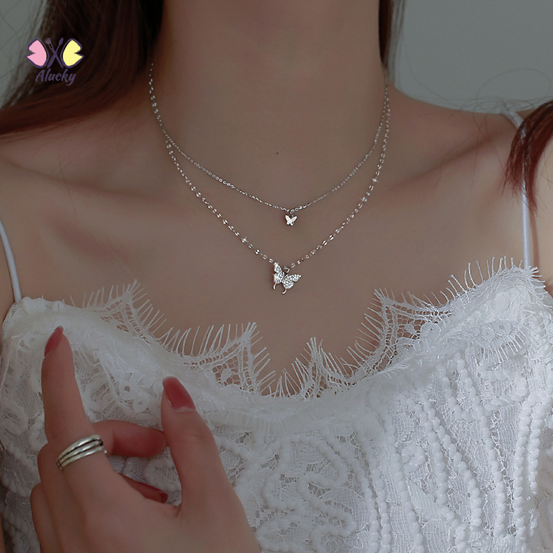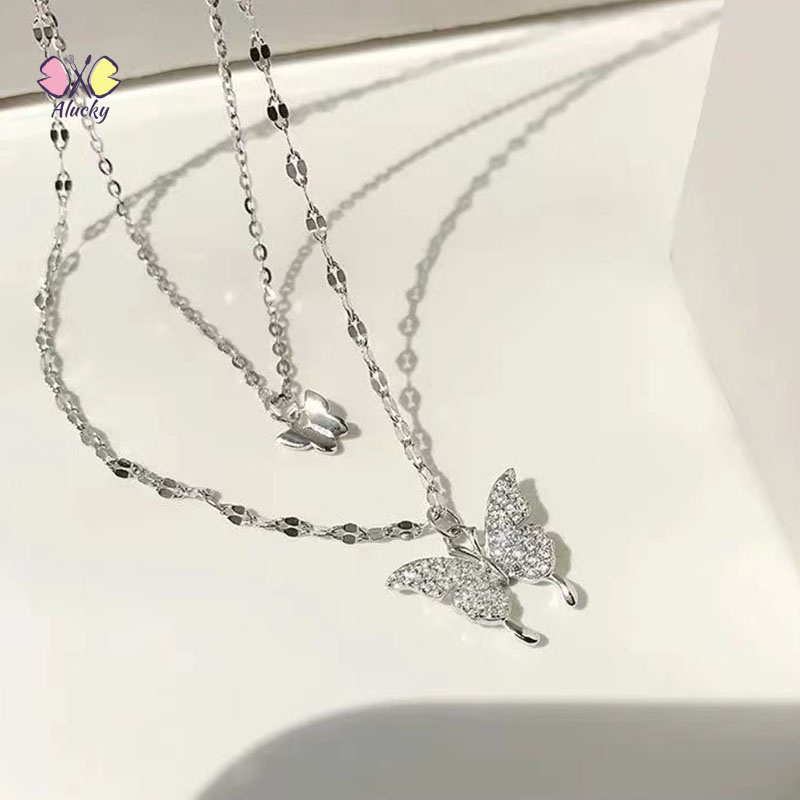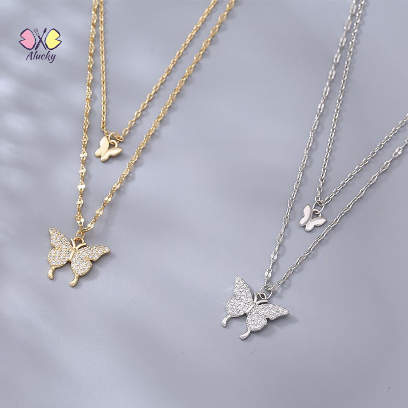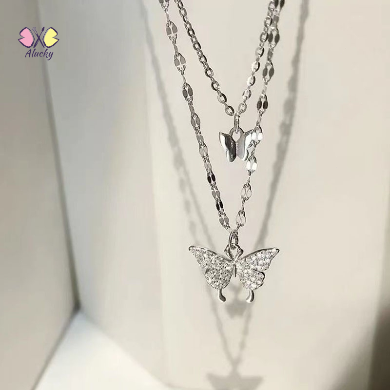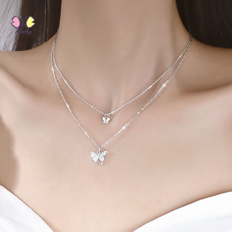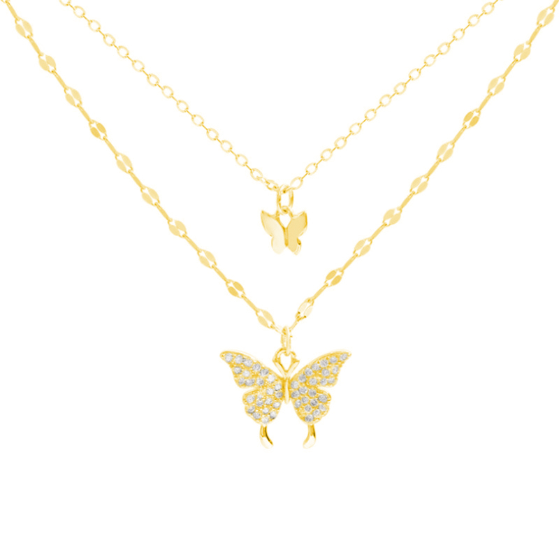 Multi-layer Zircon Butterfly Pendant Necklace for Women Accessories AL