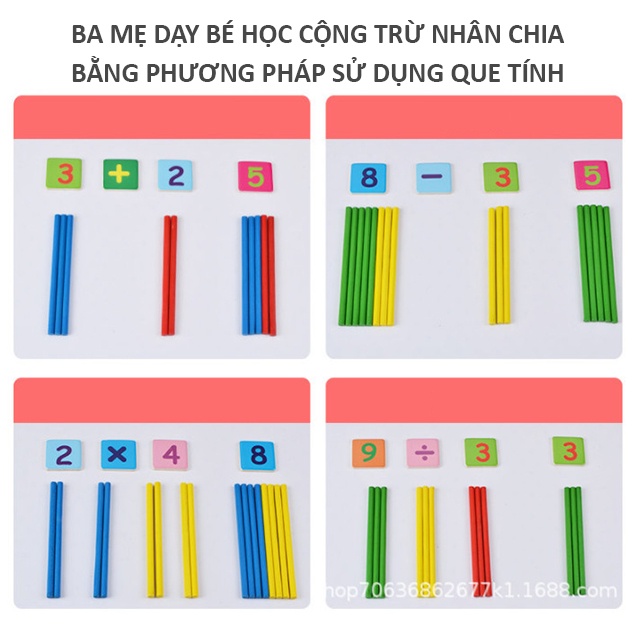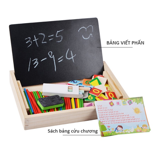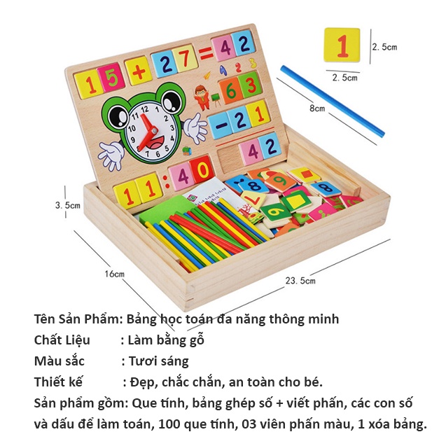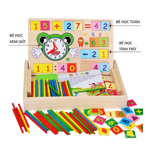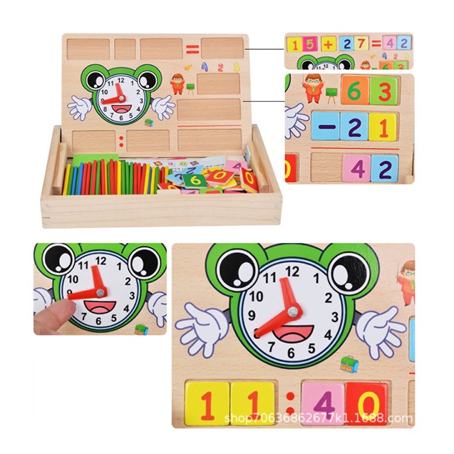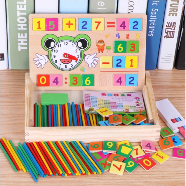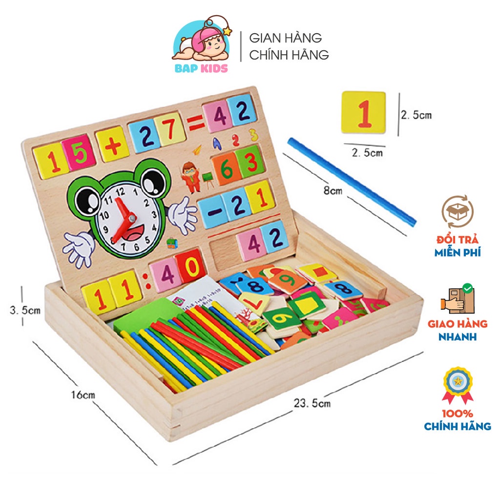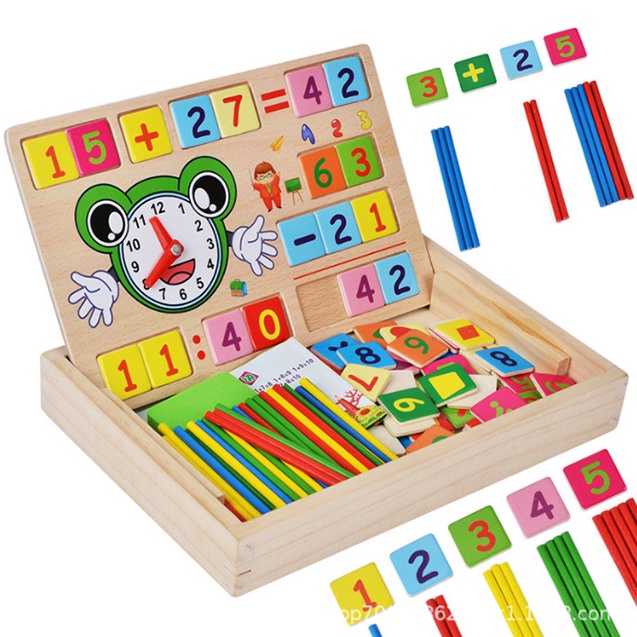Multi-purpose math box with calculator for children to learn and recognize early Bapkids wooden toys