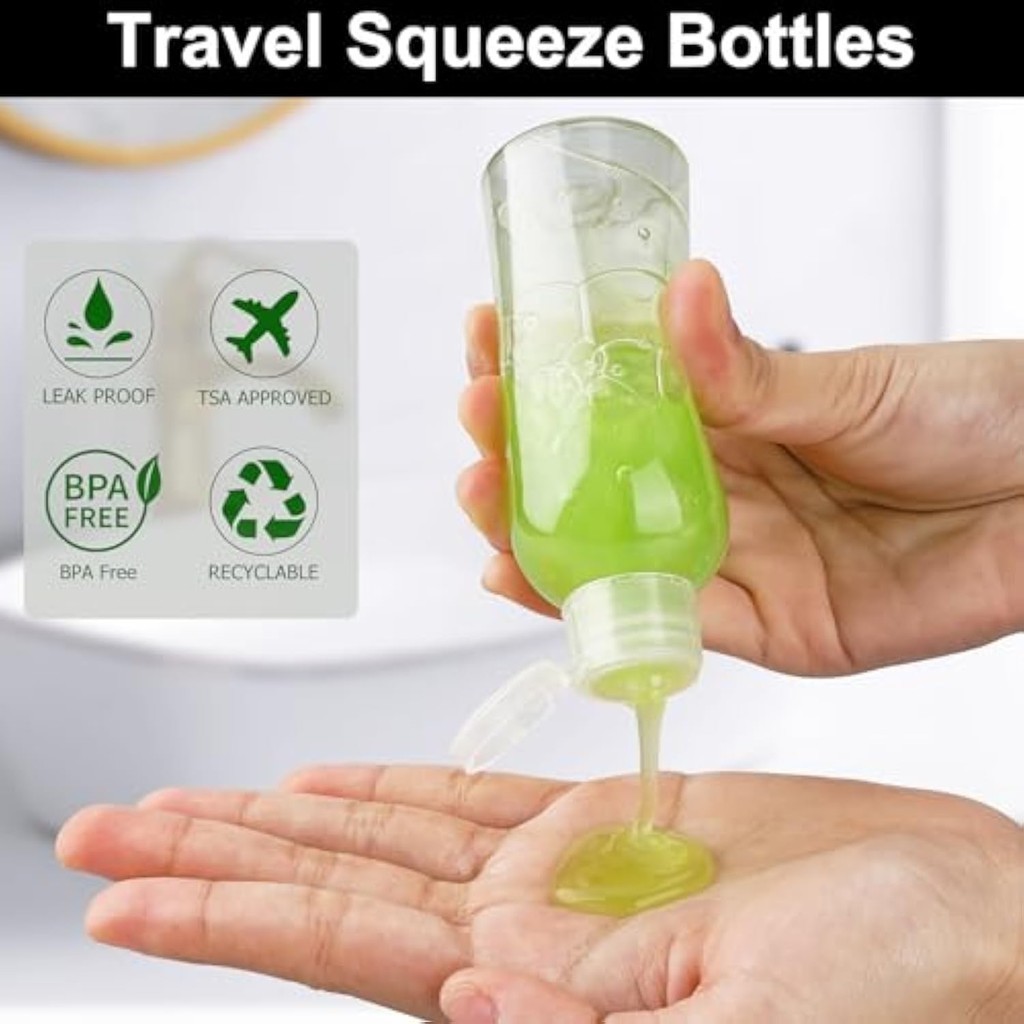 Multi-size Travel Bottles for Toiletries Leak Proof Plastic Travel Shampoo Bottles with Flip Cap TSA Approved Squeezable Travel Size Containers for Cosmetics Toiletries