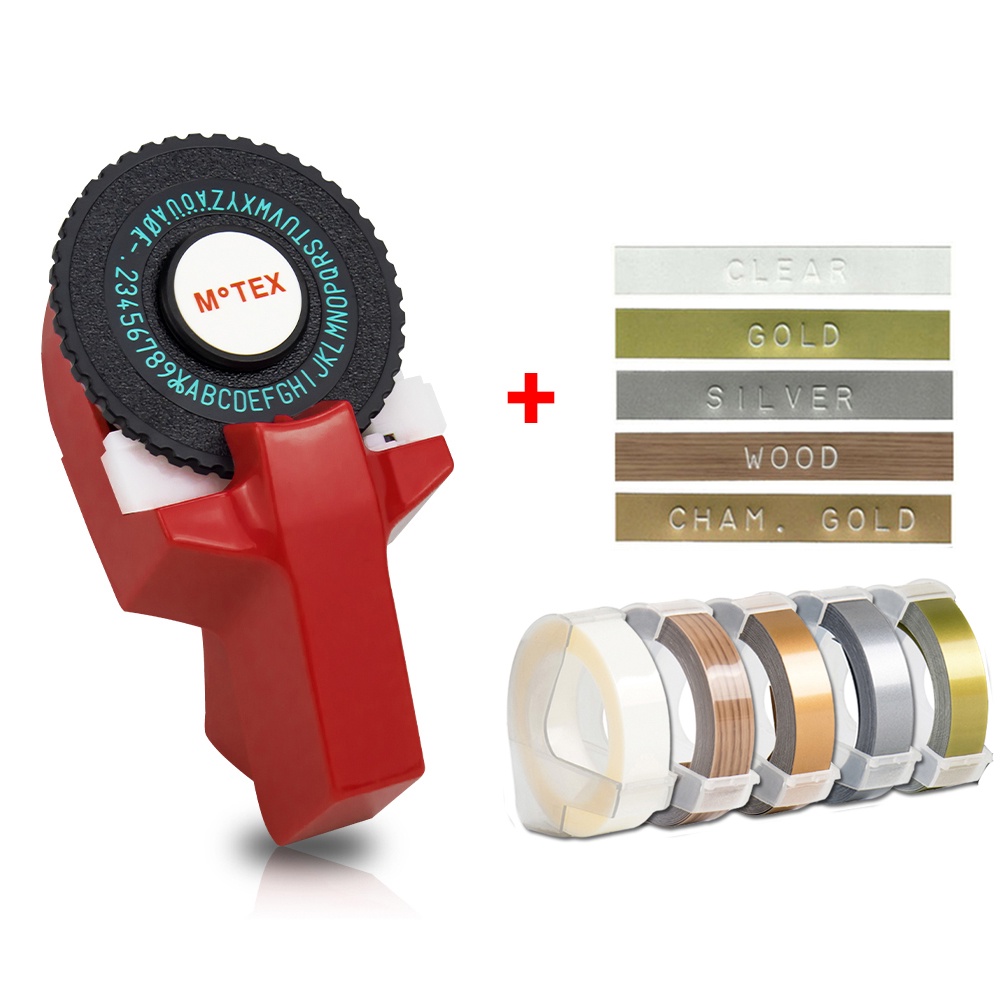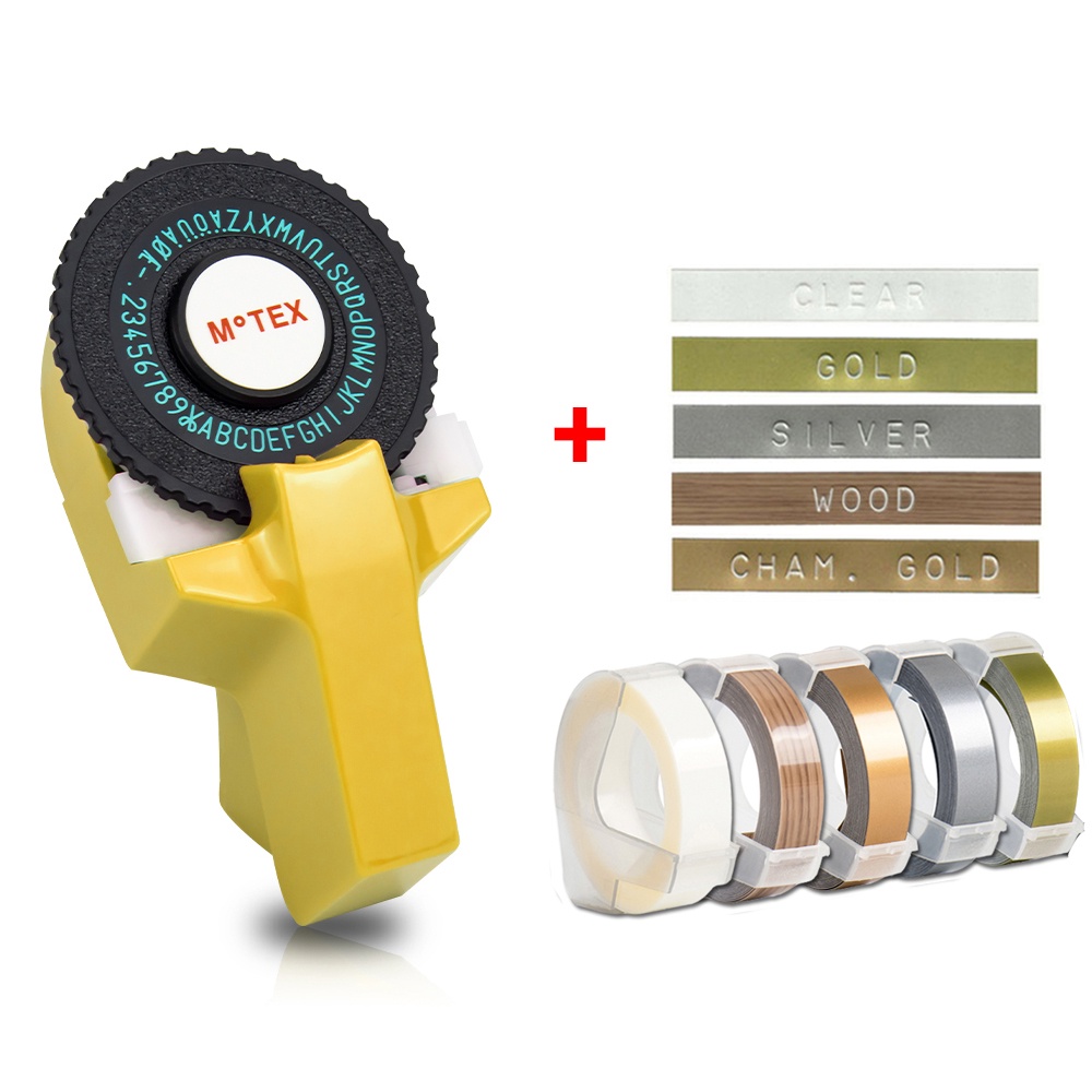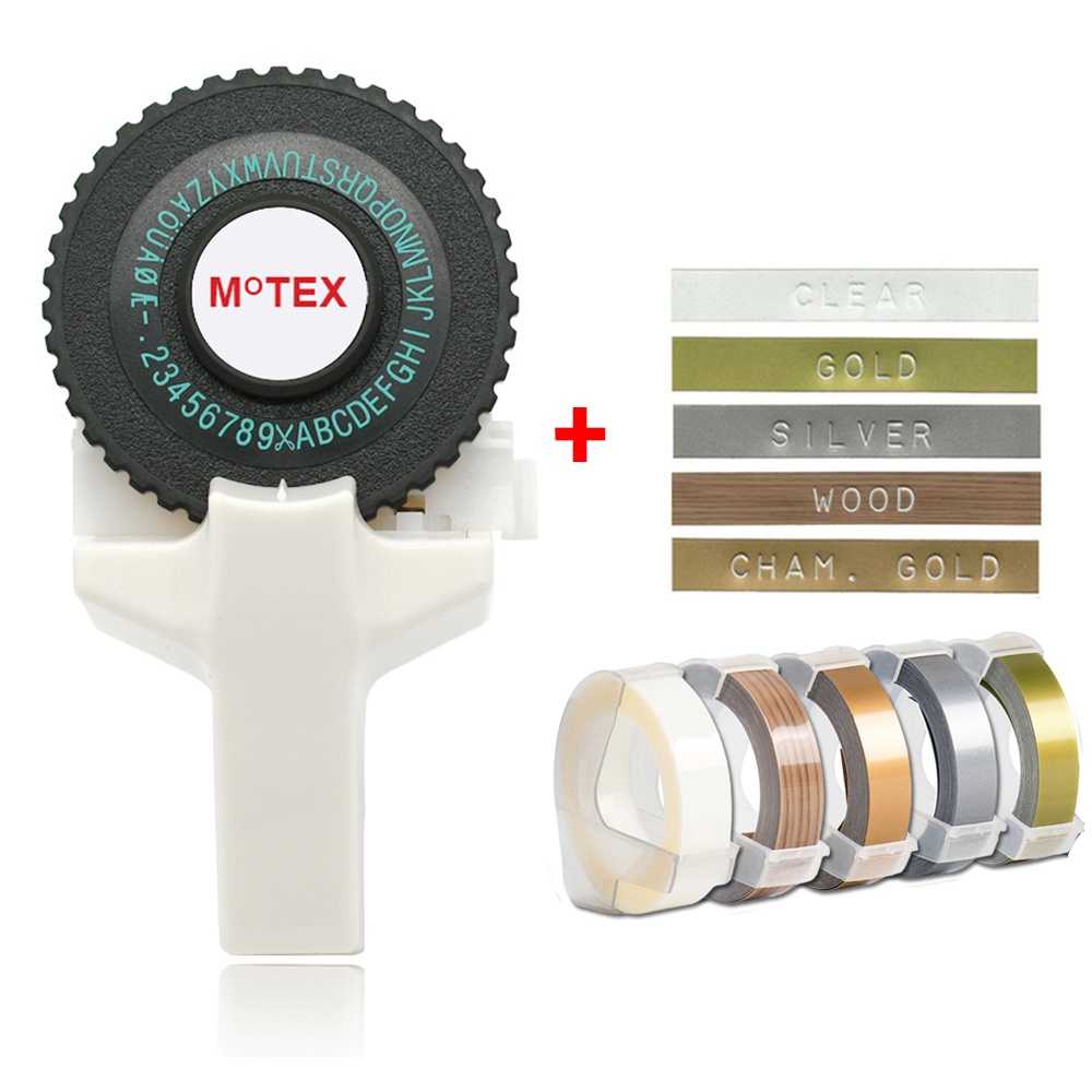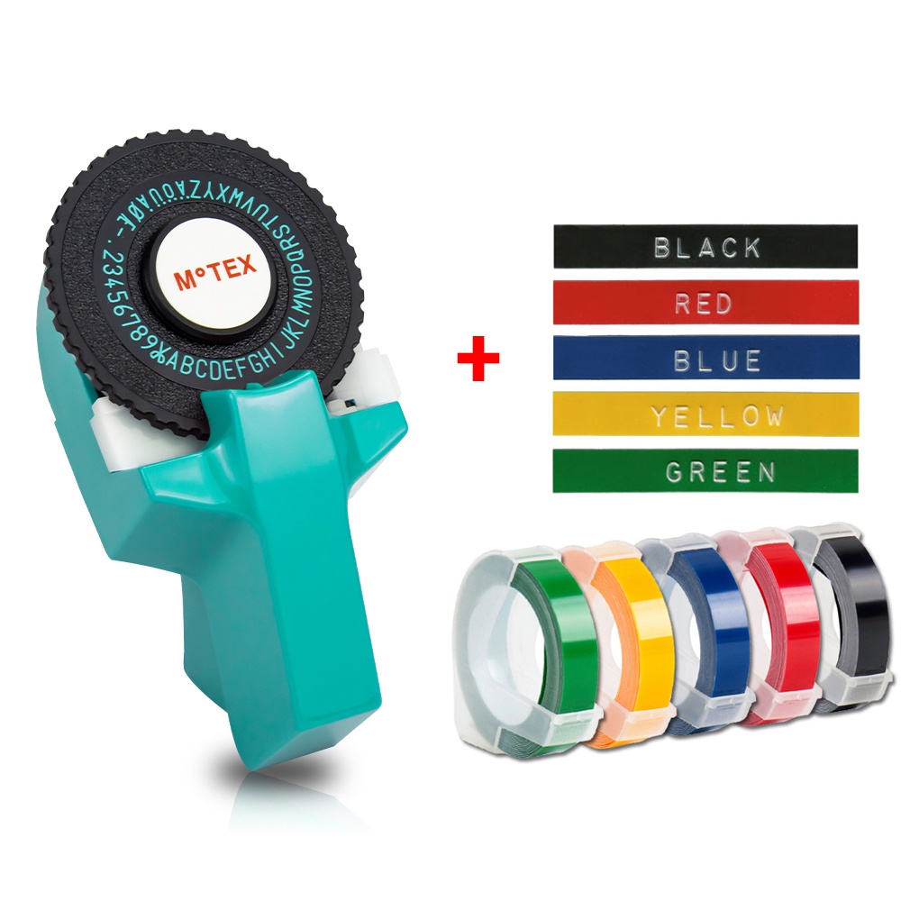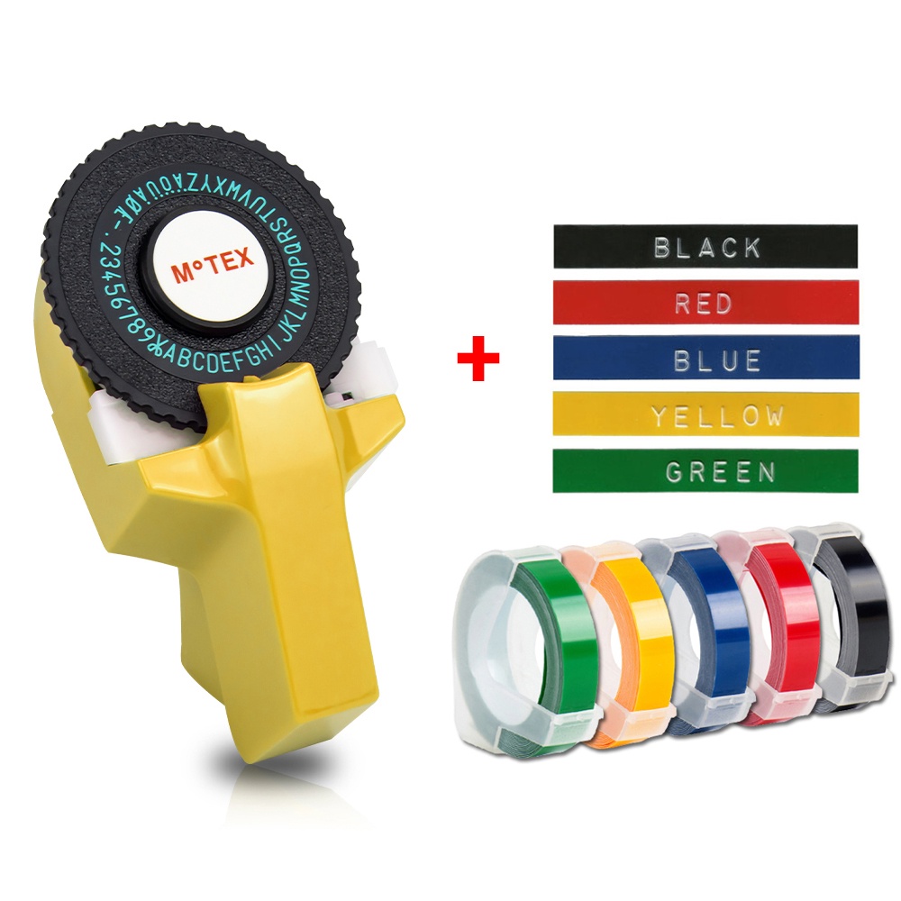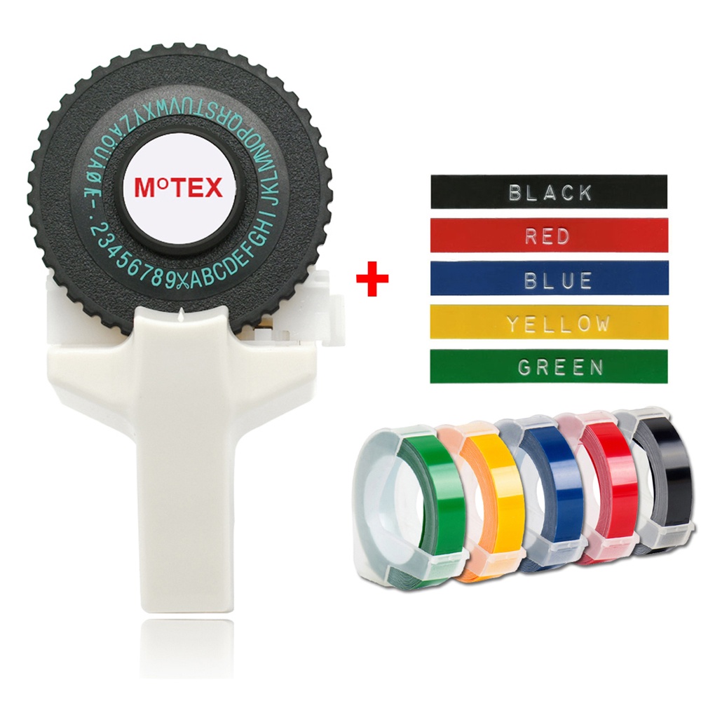 Multicolor Original Motex E101 Embossing Label Maker (with 5 refills) Handhold Typewriter for 9mm 3D PVC Refills