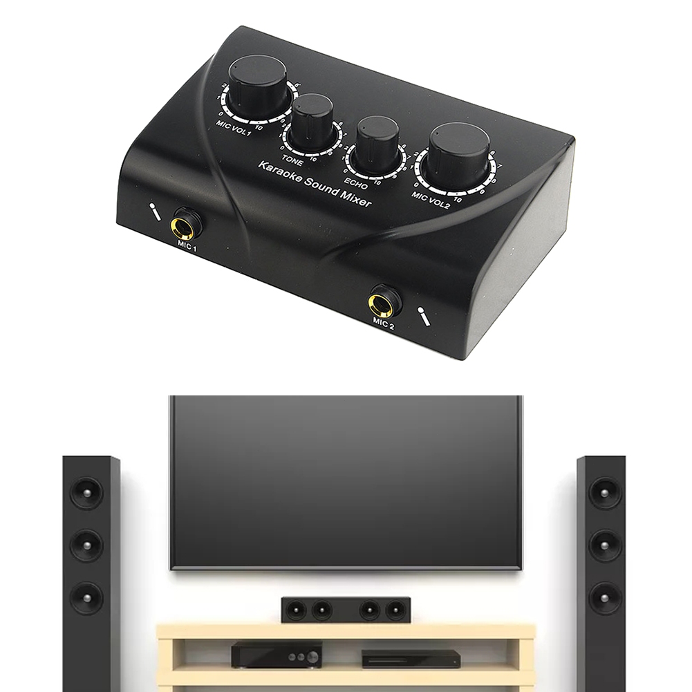 Multifunctional Audio Mixer Amplifier Portable Dual Mic Inputs For Amplifier & Microphone Karaoke Echo Mixer Adjustable Echo Effect