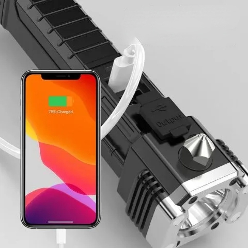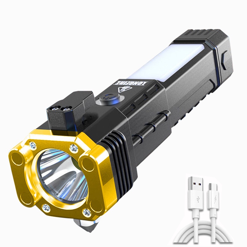 Multifunctional Charging LED Flashlight Emergency Light Car Safety Hammer Window Breaker USB Warning Torch Light Outdoor