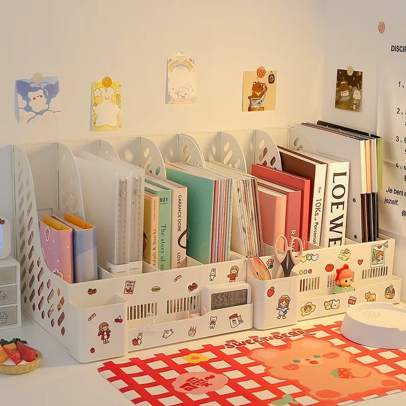 Multifunctional File Tray Storage Box with Pen Holder - Simple File Folder Racks Notebook Folder Organizer - Creative Home Book Stationery Shelf