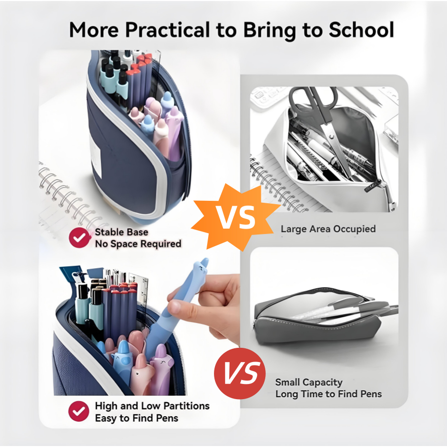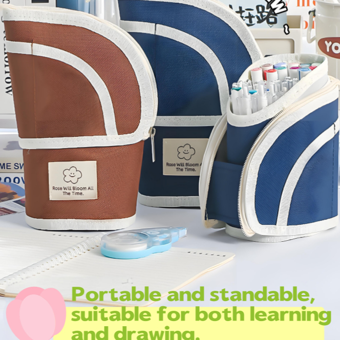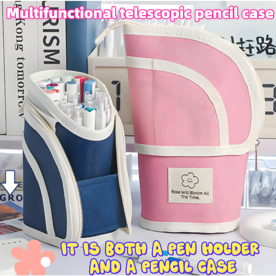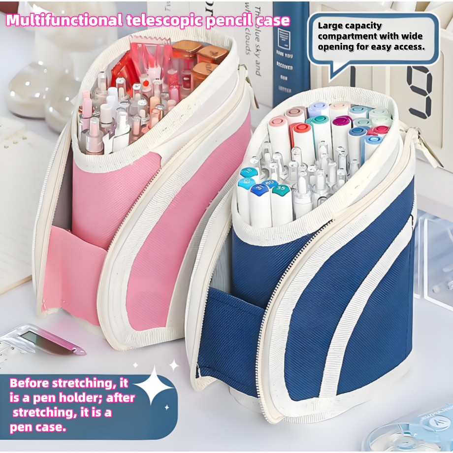 Multifunctional Retractable Pencil Case 2-in-1 Vertical Pen Holder Portable Pencil Case Pen Holder