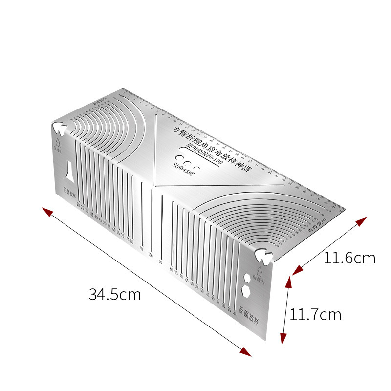 Multifunctional Square Tube Rounded Corner Right Angle Ruler for Square Tube Arc Cutting Marking