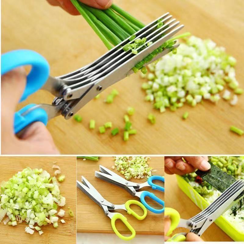 Multilayer Scissors Scallion Cutter Stainless Steel 5 Blade Multi Purpose Herb Scissors Shear Cutter Kitchen Gadget