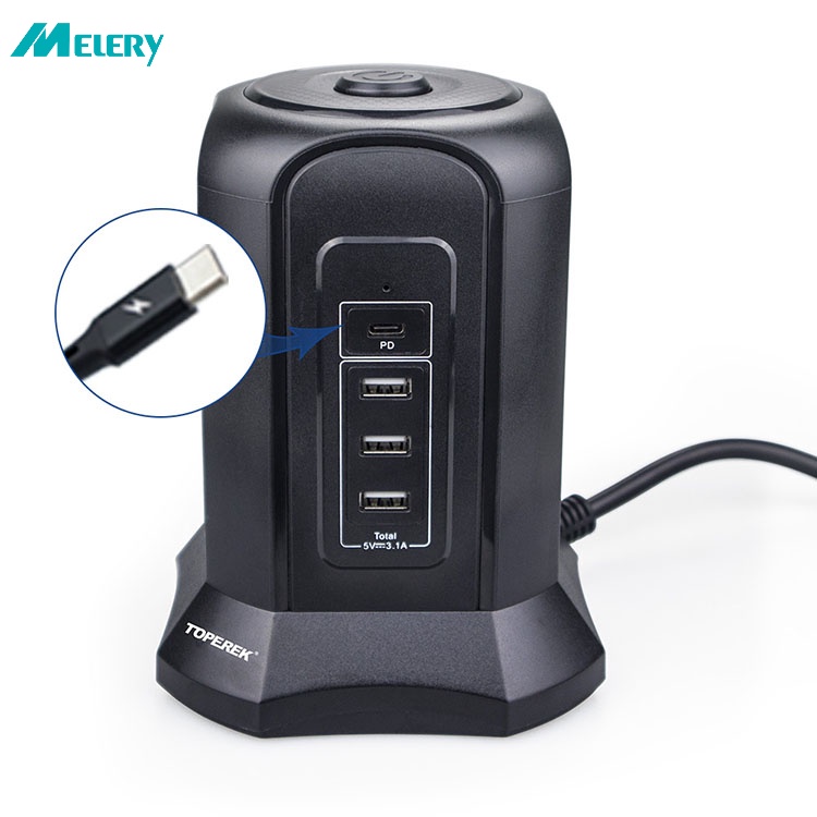 Multiple Power Strip Vertical 2 Layer Tower Surge Protector US Plug Sockets 9 AC Outlets 4 USB Double Pole 2m Extension Cord