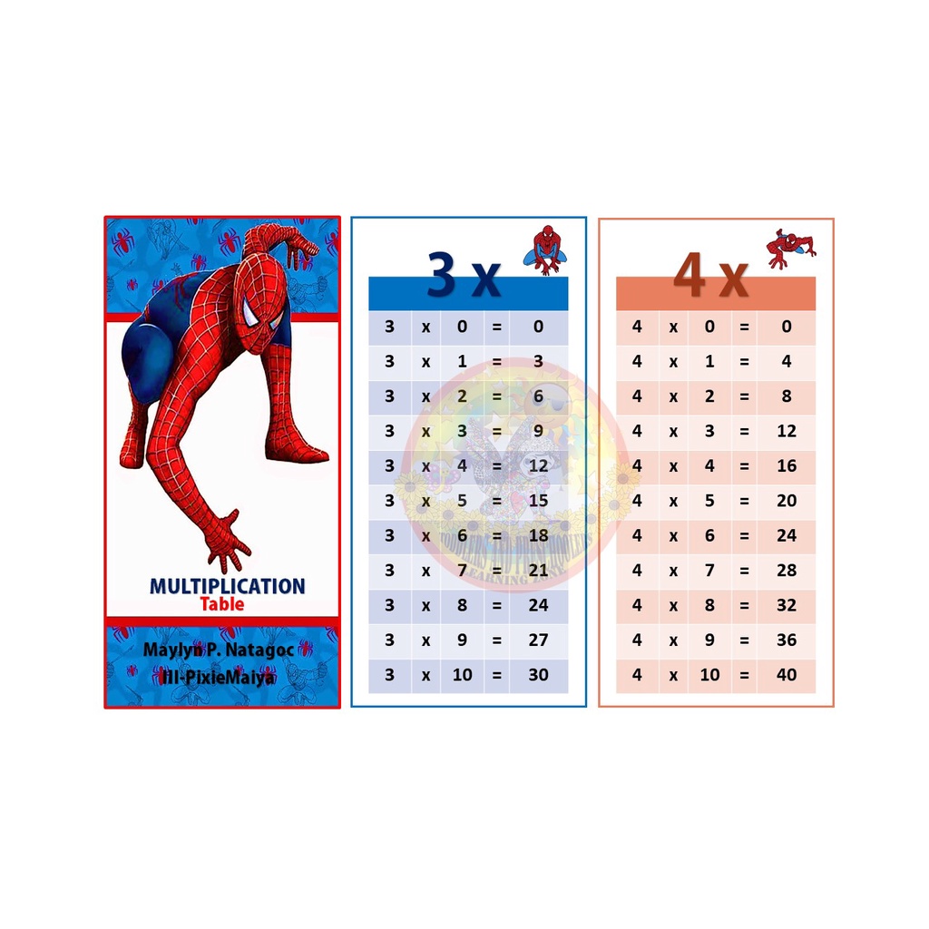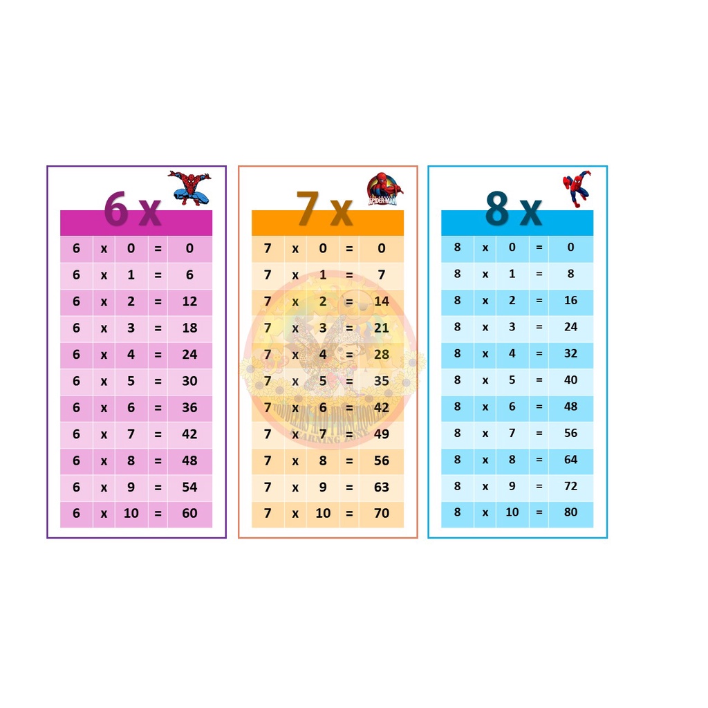 Multiplication Table 18cm x 9cm | page 1 of 2
