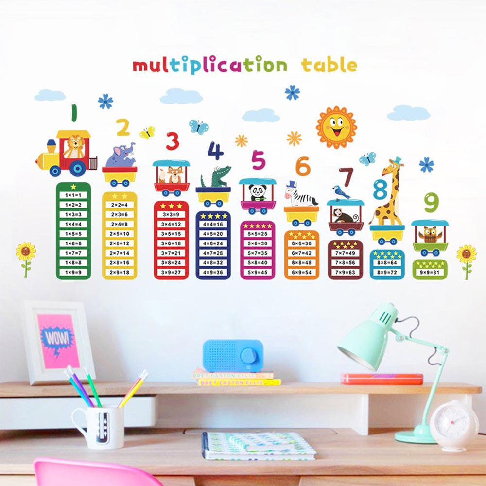 Multiplication Table Wall Stickers Cartoon Animals Education Math Wallpapers for Kids Baby Classroom