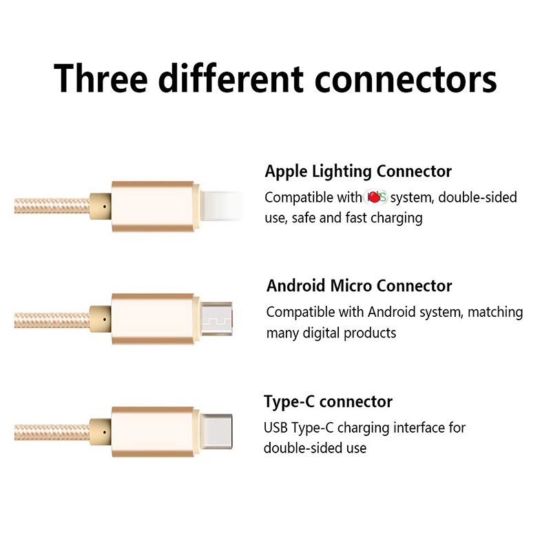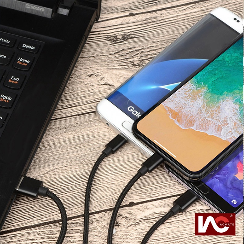Multiport USB Cable Adapter, 3 in 1 Nylon Braided Multi USB Cable Charges 3 Phone at Same time