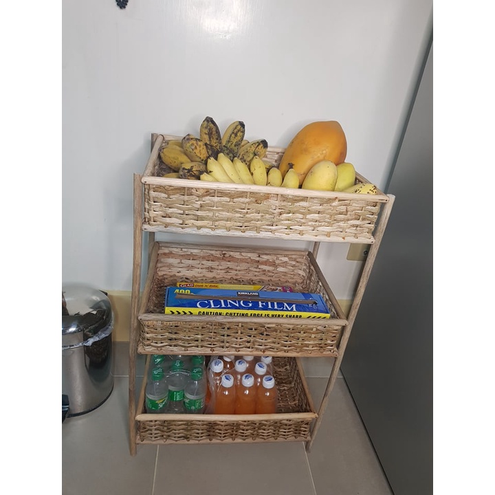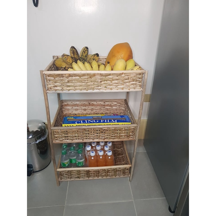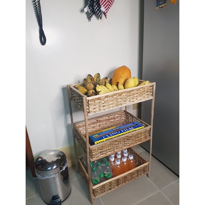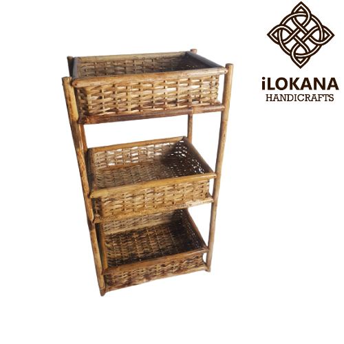 Ilokana Handicrafts Multipurpose Big Rattan Three Tier Storage Rack