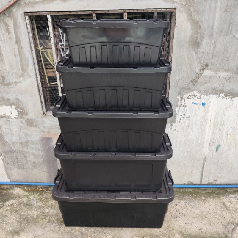 Multipurpose Heavy-Duty Black Storage Box with Cover – 33L / 55L / 78L / 100L / 135L