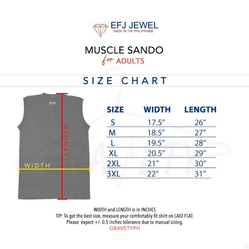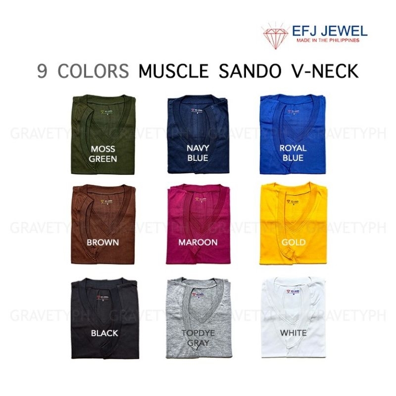 Muscle Sando V-NECK for Adult - 9 Colors available EFJ Jewel Brand Vneck