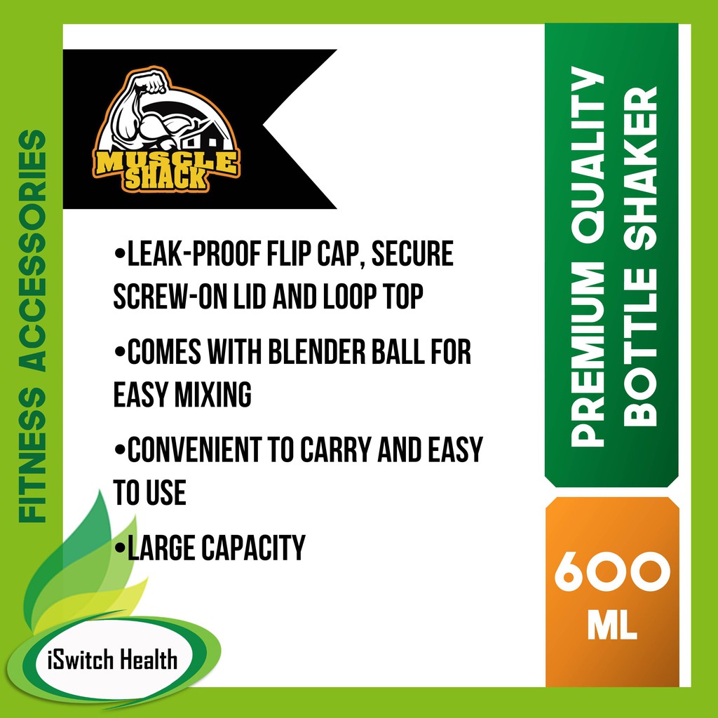 Muscle Shack Fitness Gym Protein Shaker Bottle w/ Steel Ball | 32oz | 600ml | High Quality Bottle