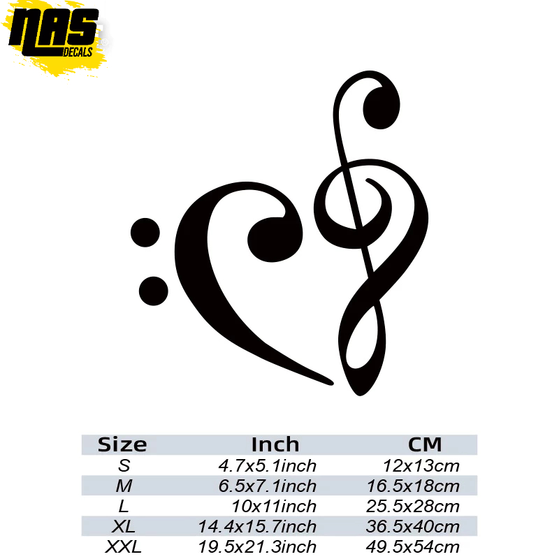 Musical Note & Heart Stickers for Musicians and Music Lover Decals for Car and Motorcycle