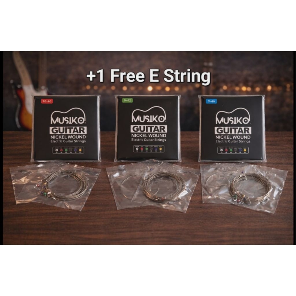 Musiko Strings 1046, 946, 942 for Electric Guitar (free high E string) (Nickel Wound)