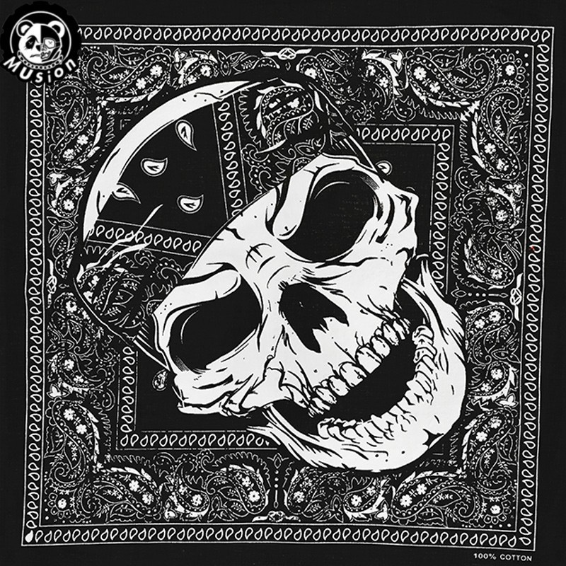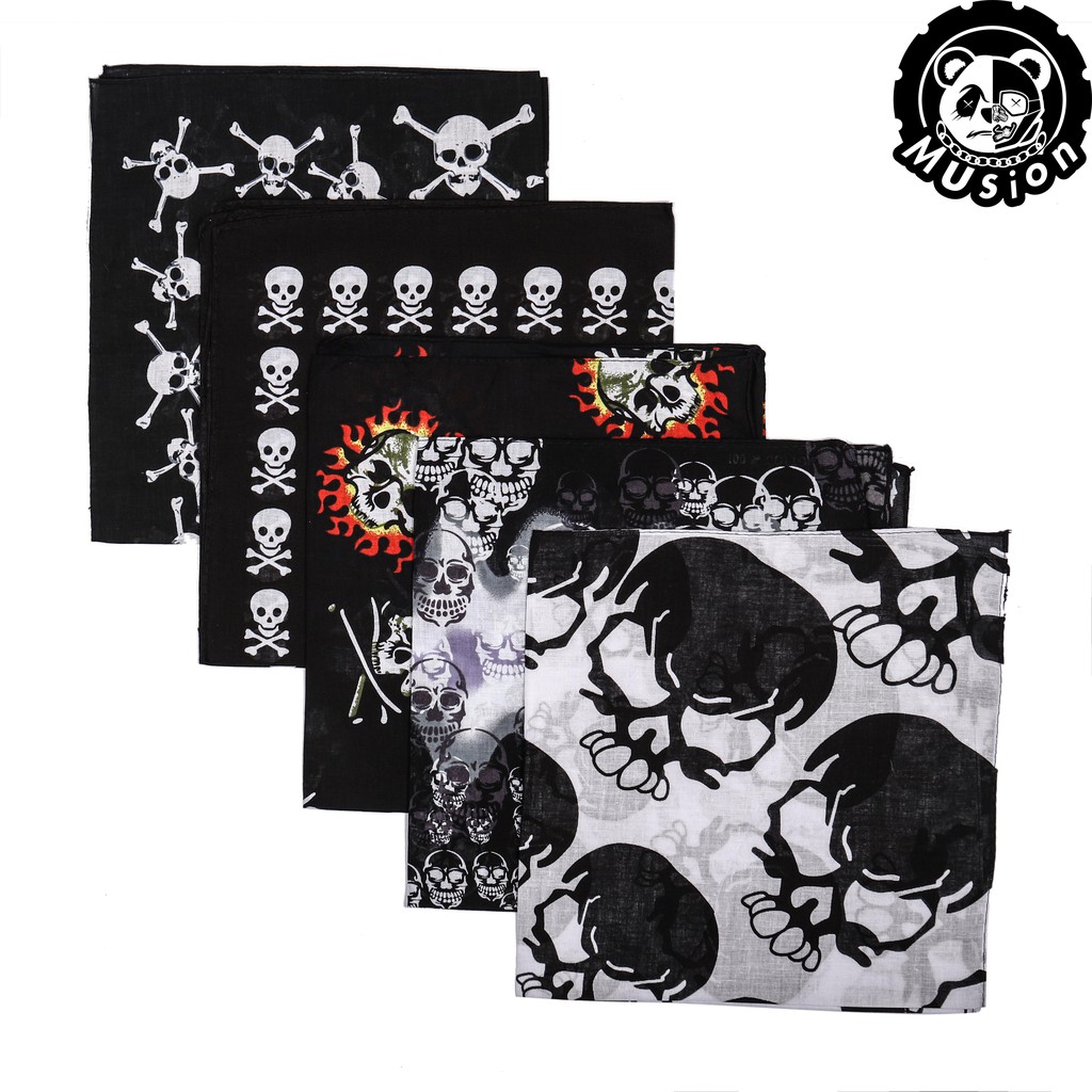 Musion Bandana Panyo 100% Cotton Skull Bandana Fashion Hip Hop Square Scarf 55cm*55cm Black Red Headband Printed For Women Men Boys Girls