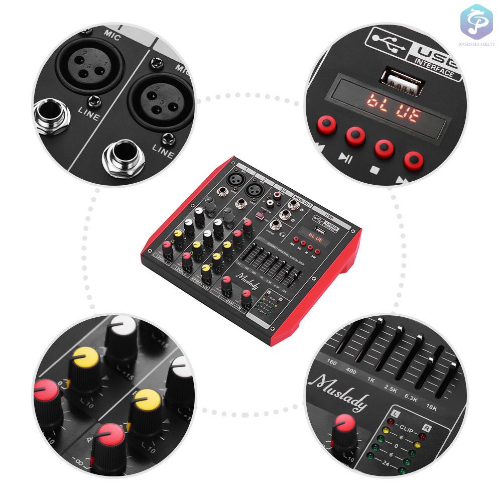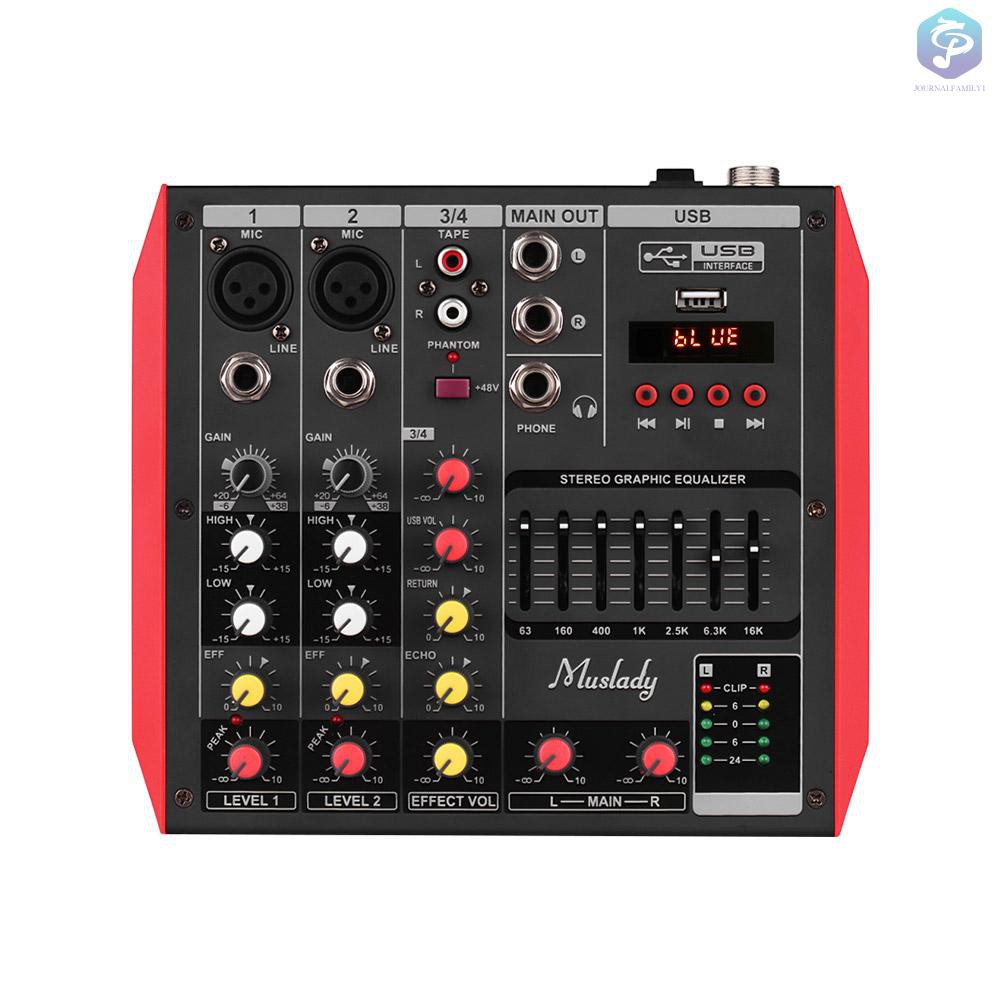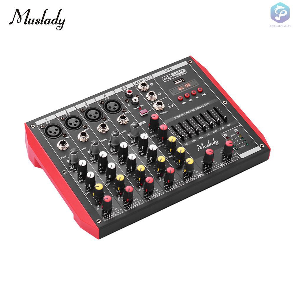Muslady D6 Portable 6-Channel Mixing Console Mixer 7-band EQ Built-in 48V Phantom Power Supports BT Connection USB MP3 Player for Music Recording DJ Network Live Broadcast Karaoke