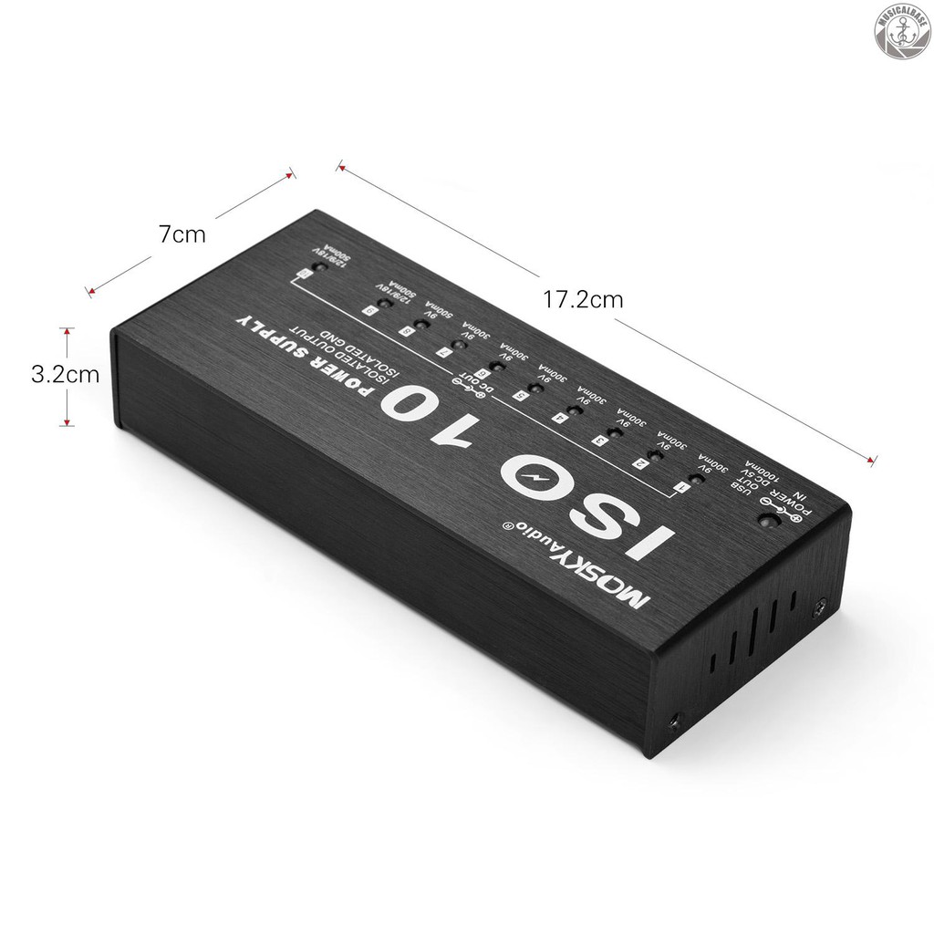 Muslady Mosky ISO-10 Portable Guitar Effect Power Supply Station 10 Isolated DC Outputs And One 5V USB Output for 9V 12V 18V Guitar Effects