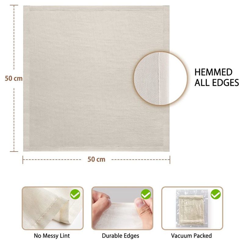 Muslin Cloths for Cooking, 50X50cm, Grade Hemmed Cheese Cloths for Straining, Unbleached Pure Cotton Cheese Cloth 3 Pcs