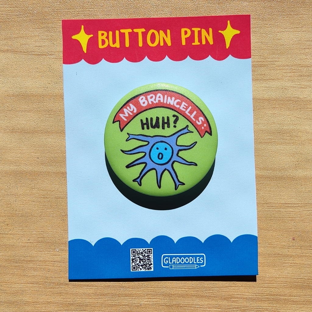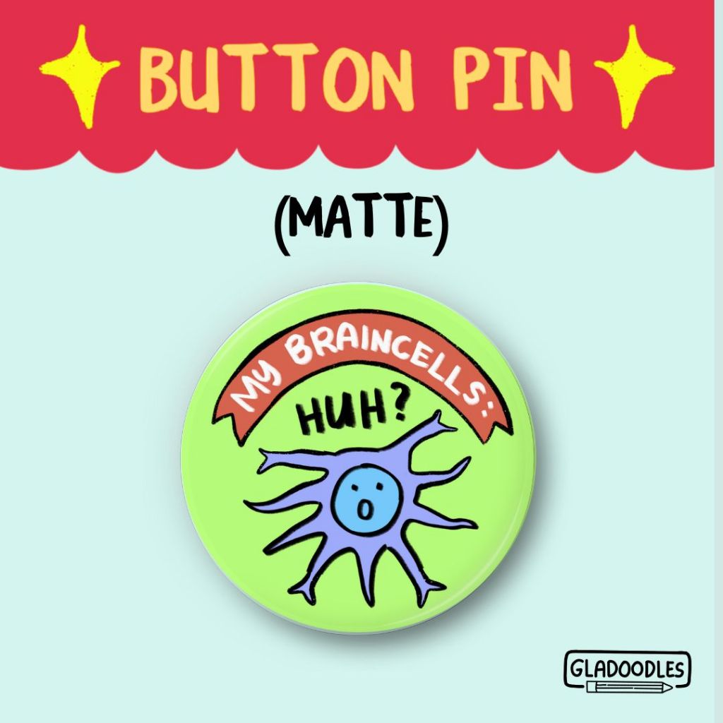My Braincells: Huh? Button Pin (Matte) by Gladoodles | 1.75"