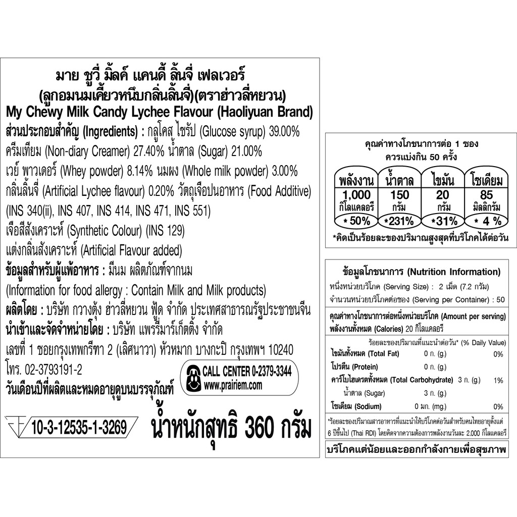 Mychuvy Milk Candy Lychee 360g. Chewy Filled With Flavor Size 360 G./My 360g.