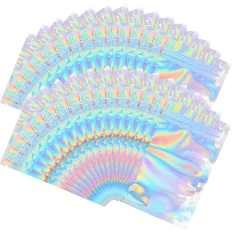 Mylar Holographic Resealable Bags Smell Proof Bags Foil Pouch Ziplock Bags for Party Favor Food Storage Jewelry Packaging